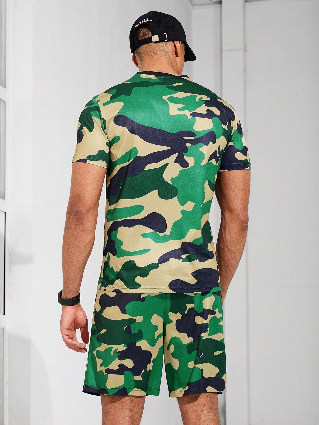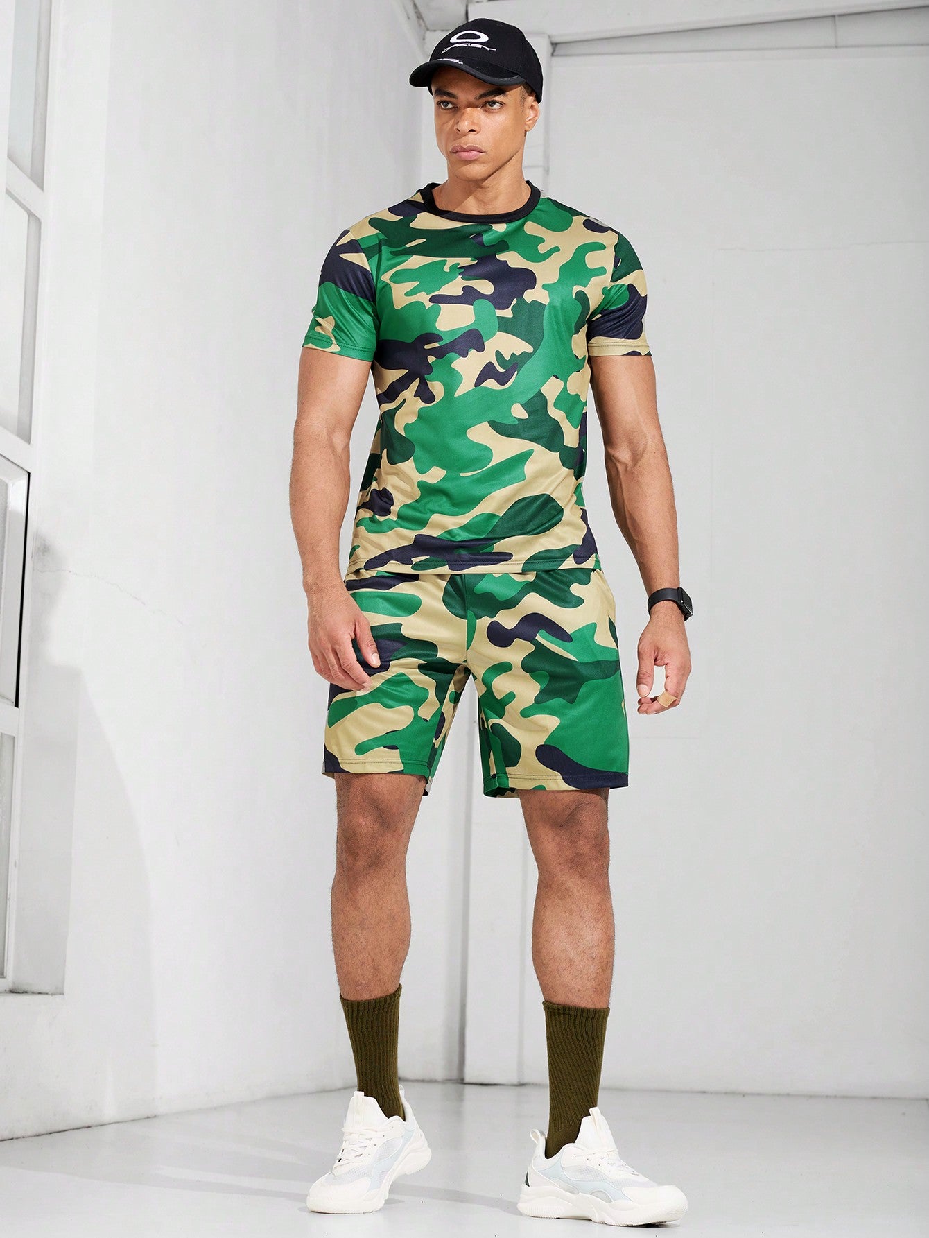 Fit Type : Regular FitNeckline : Round NeckType : ShortsColor : MulticolorPattern Type : Camo, Plants, All Over PrintFabric : Slight StretchCare Instructions : Machine wash, do not dry cleanSheer : NoPants Length : Bermuda shorts Tops Length : Regular Tops Sleeve Length : Short Sleeve Pants Material : Fabric...