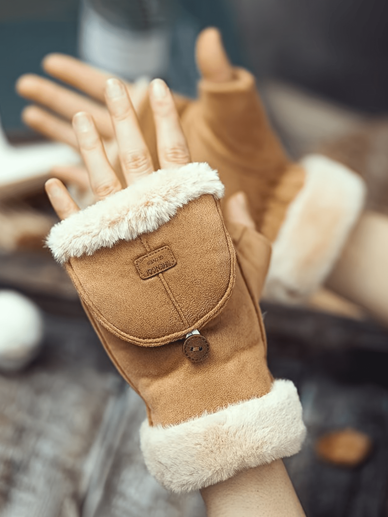 1 Pair Autumn And Winter Warm And Fashionable Touchscreen Compatible Suede Flap Cycling Gloves