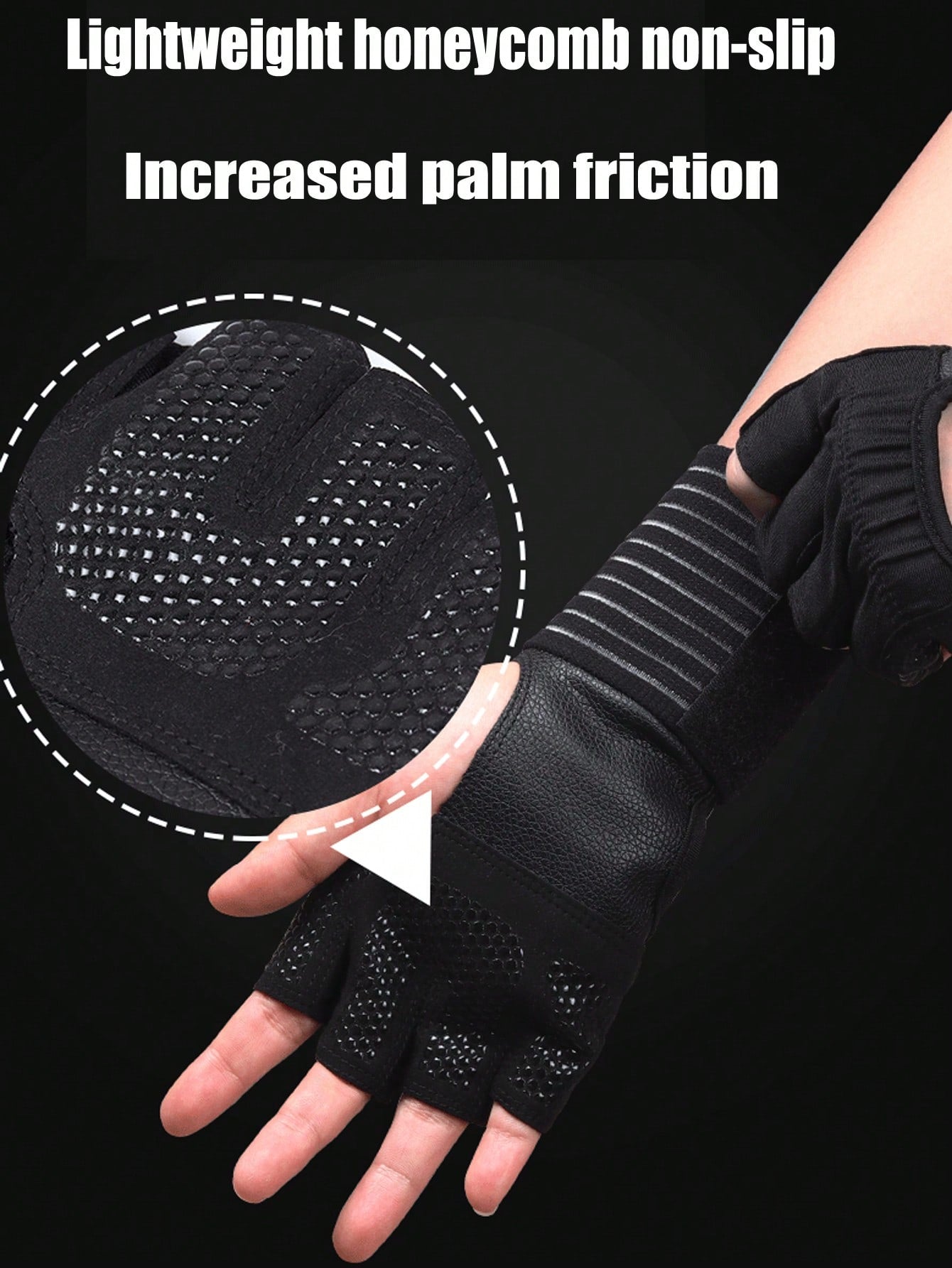 1 Pair Breathable Workout Gloves, Padded Weight Lifting Gloves With Wrist Wrap, Full Palm Protection, Suitable For Gym Training, Fitness, Weight Lifting, Exercise - Fingerless Black