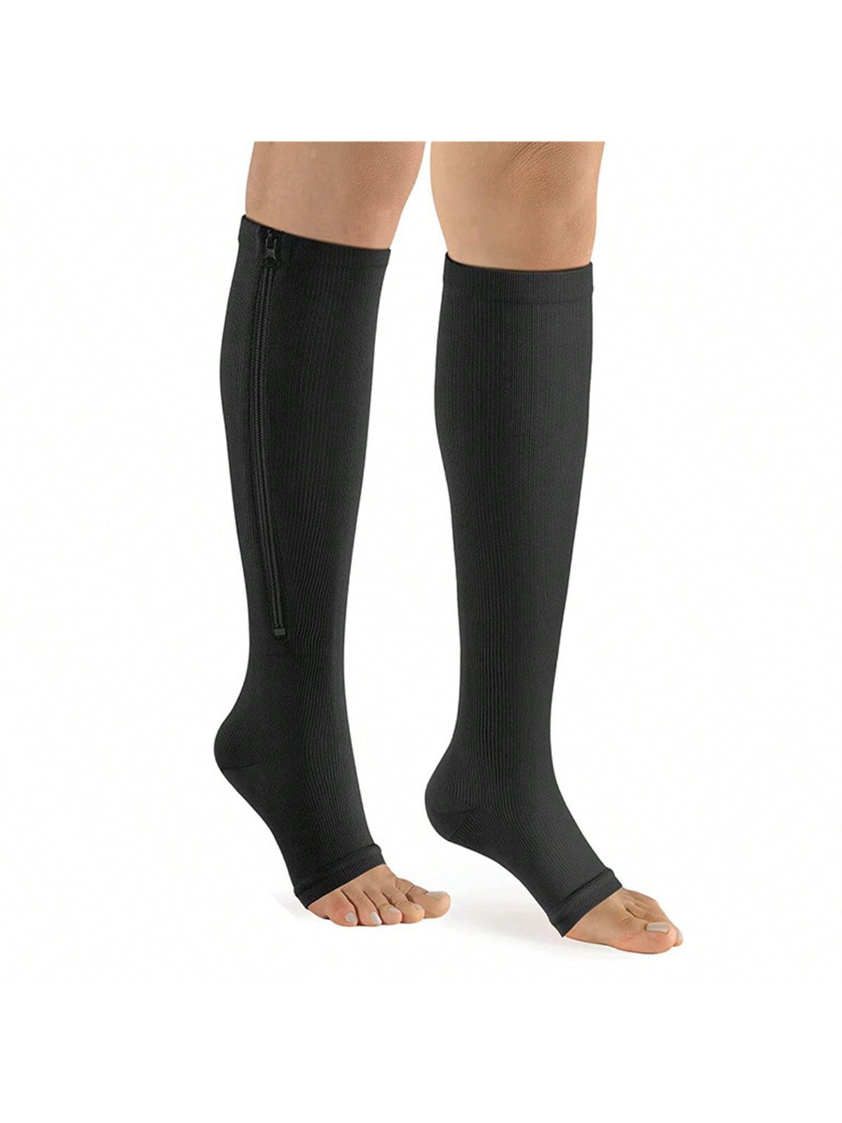 1 Pair Toe-Less Compression Socks With Side Zipper, Toe Exposed Pressure Socks, Multi-Functional Calf Sleeves, Sleep Elastic Compression Hosiery, Suitable For All-Day Wear, Sports Socks