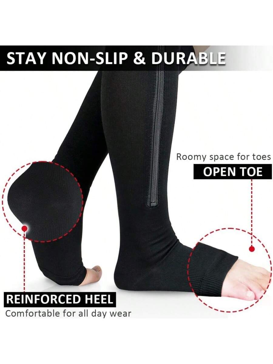 Zip-Up Compression Socks, 15-20mmHg, Knee-High, Toeless Design, For Sports