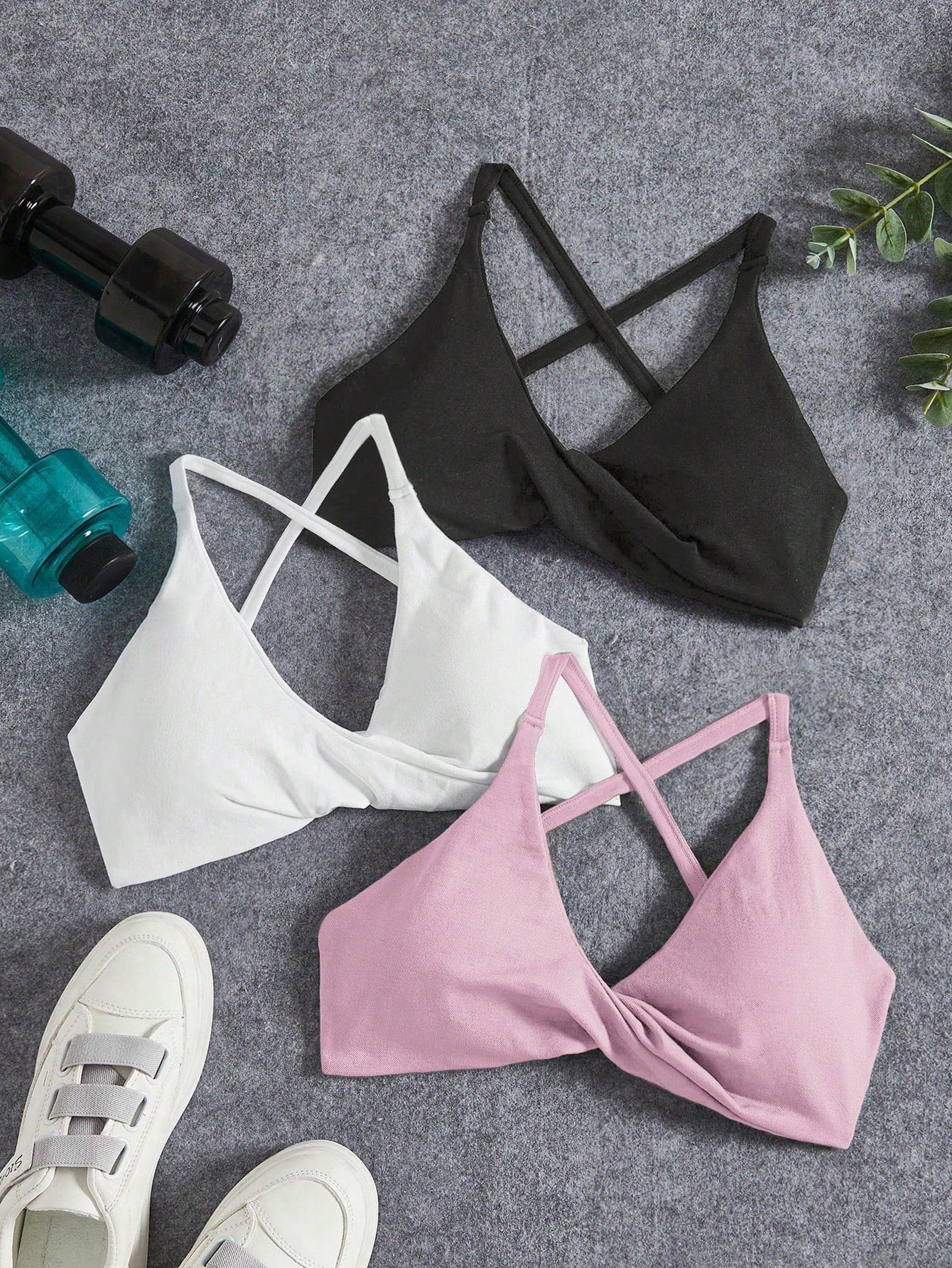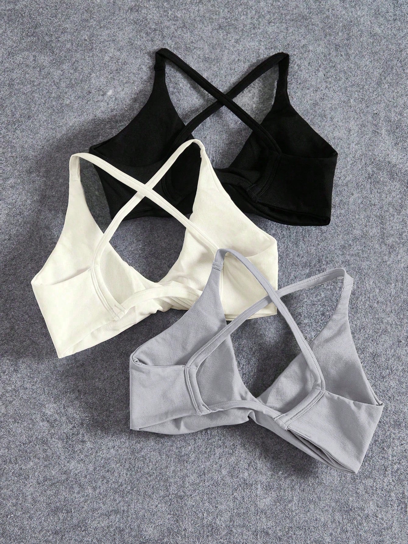Features : SeamlessActivity : Yoga & StudioDetails : Criss Cross, TwistLength : CropNeckline : Spaghetti StrapColor : MulticolorPattern Type : PlainBra Type : Straight and Crossed StrapsBody : LinedNumber of Pieces : 3 Piece SetSupport : Medium SupportFabric : Medium Stretch, High StretchMaterial : FabricComposition : 93% Polyamide, 7% ElastaneCare...