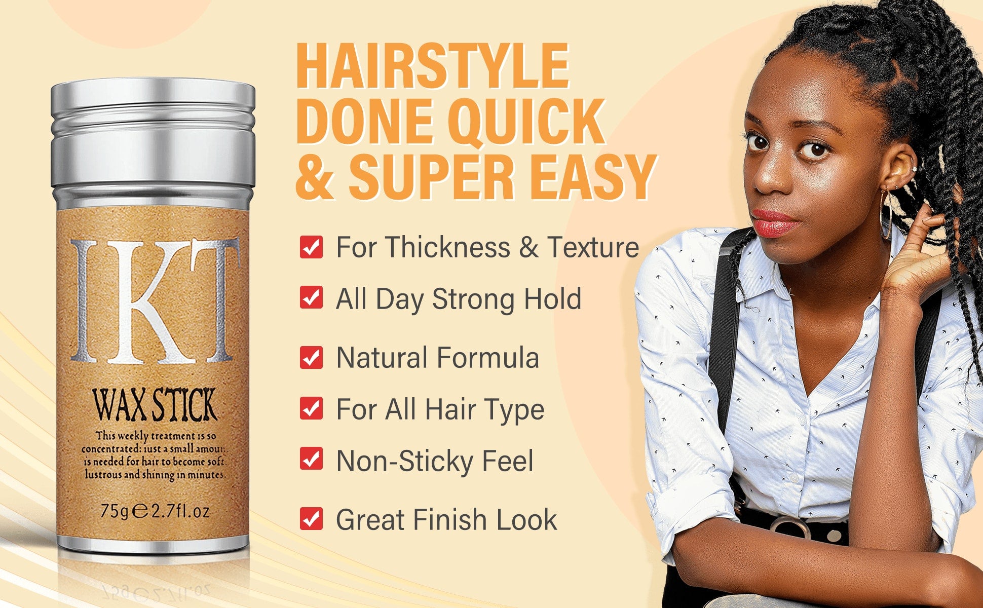 ikt Hair Wax Stick, Styling Wax For Smooth Wigs, Slick Stick For Hair Non-Greasy Styling Hair Pomade Stick For Flyaway Edge