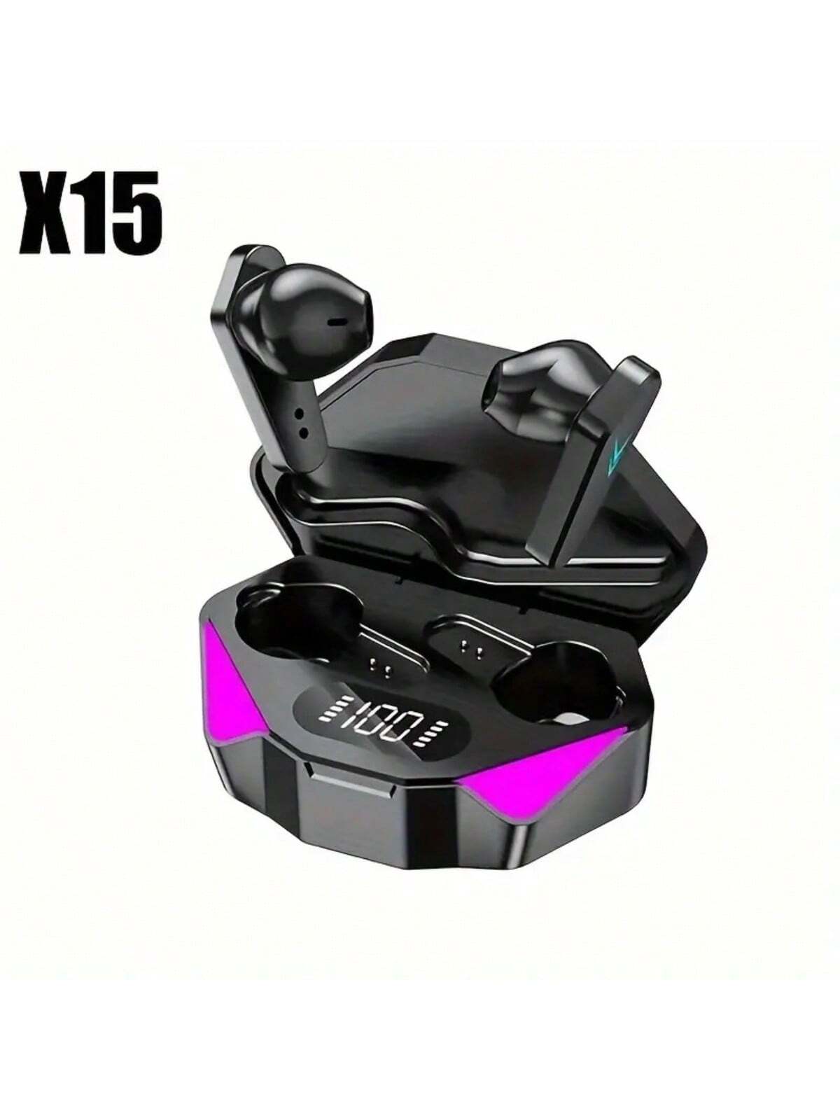 X15 Bluetooth Headset TWS LED Display Wireless Earbuds 5.3, Wireless Gaming Headset With Mic, Semi-Open-Back Earphones, Low Latency, Noise Cancellation, Media Controls, Compatible With Cellphones, Rechargeable Lithium-Polymer Battery