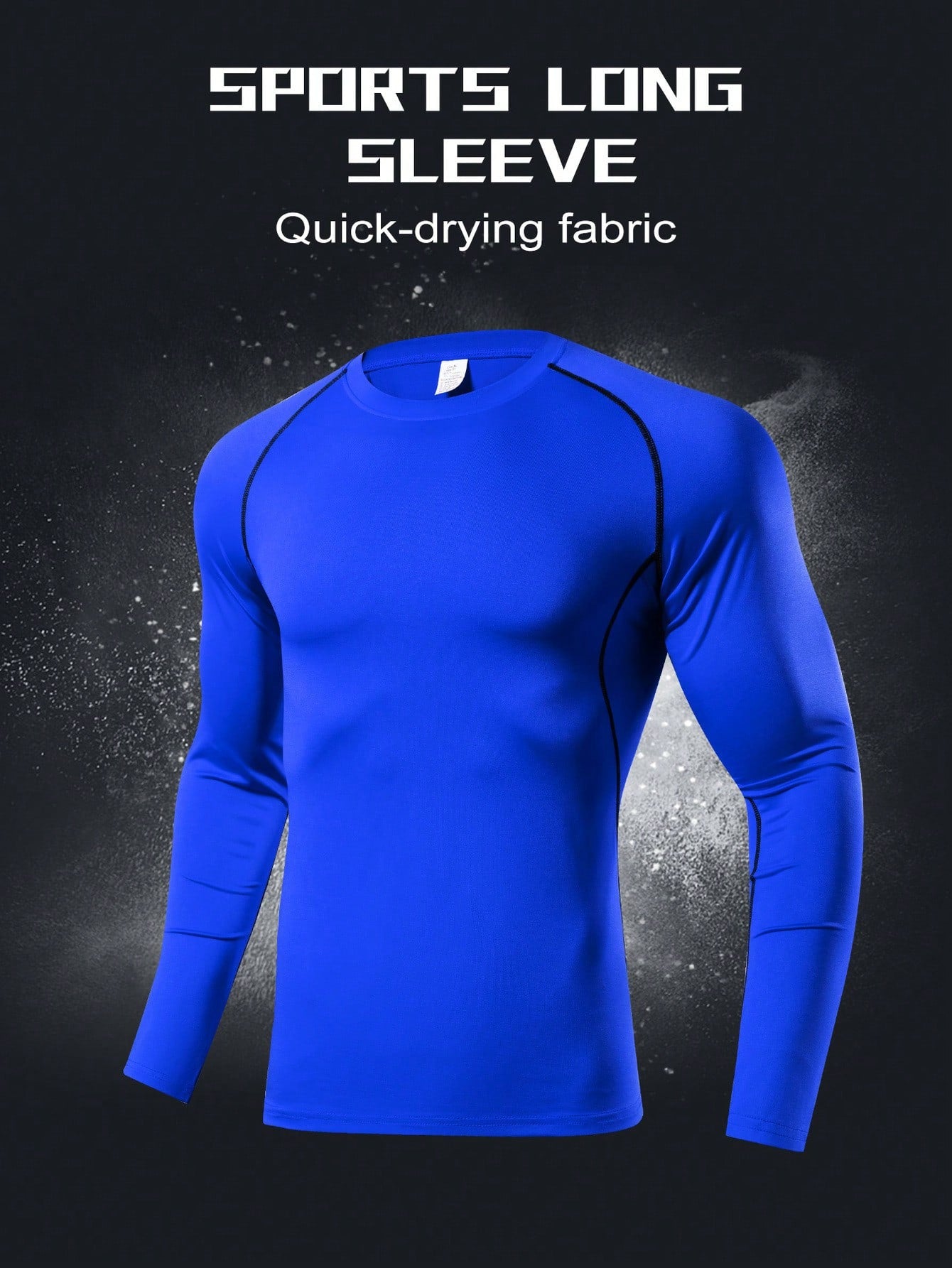 1pc Men's Compression Long Sleeve Fitness Top, Sweat-Wicking High Elasticity Base Layer For Core Workout