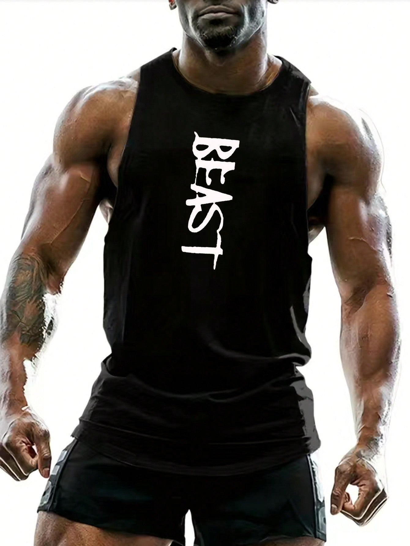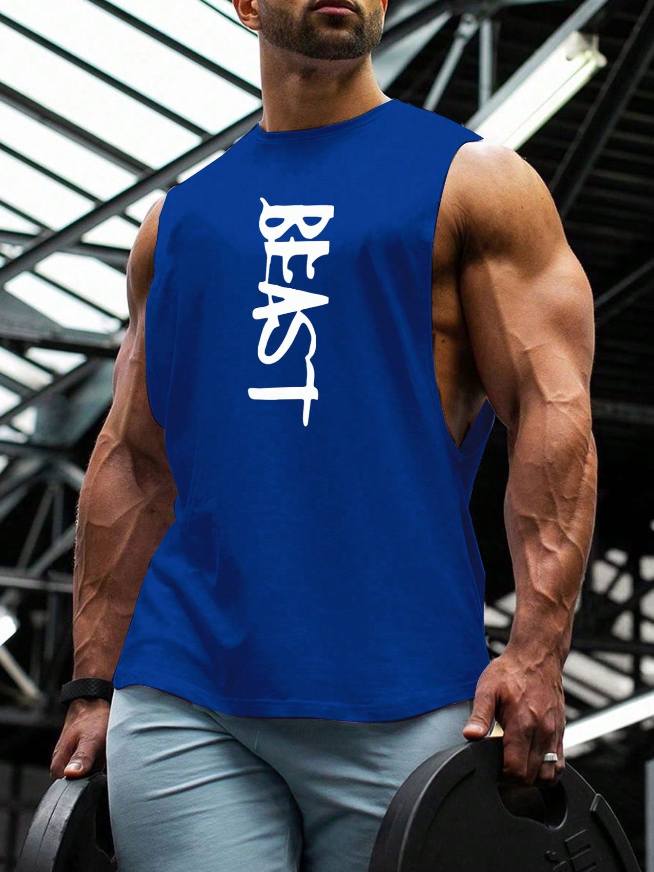 Boyfriend Style Men's Letter Print Round Neck Sports Tank Top Workout Tops