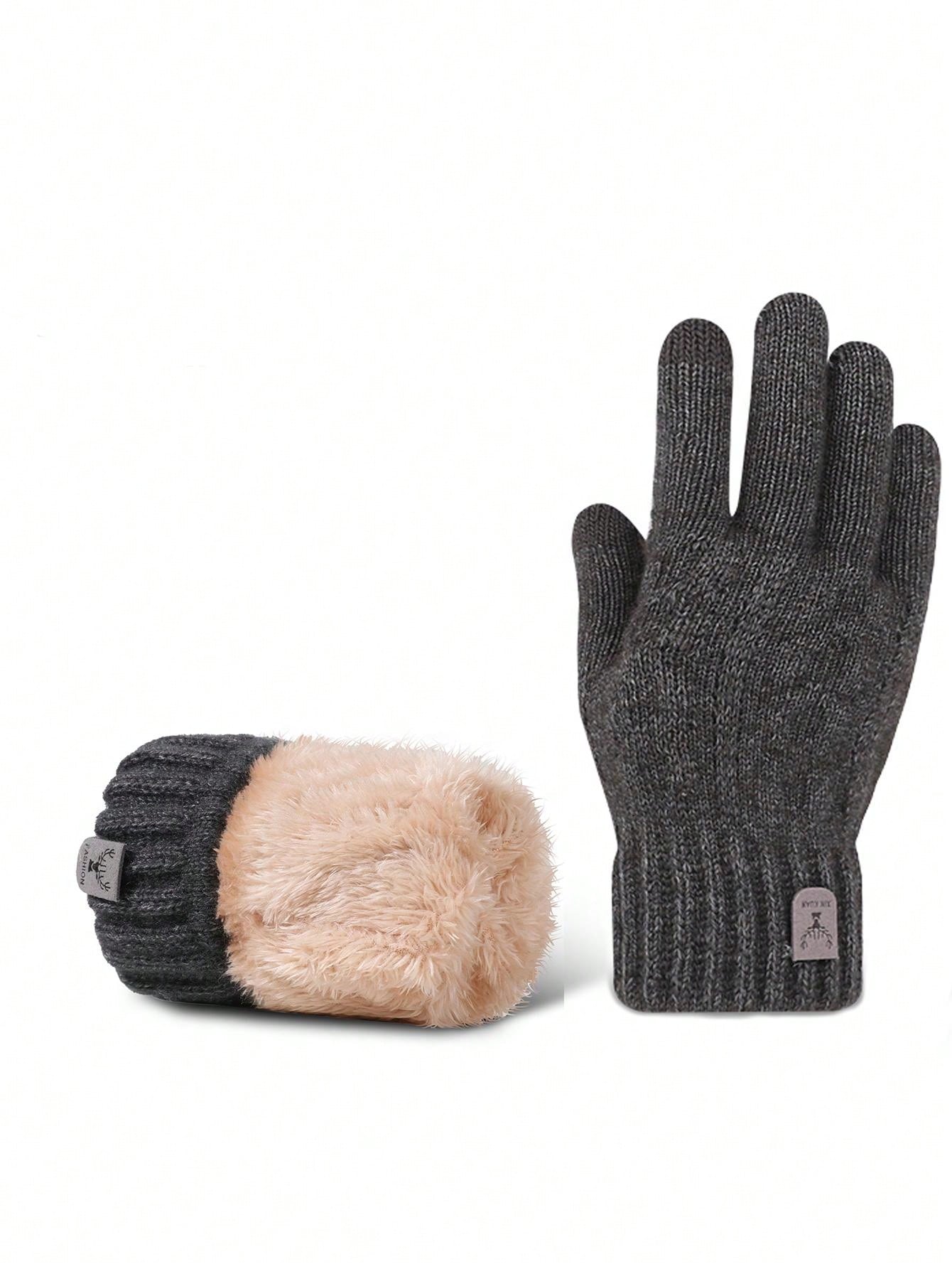 1pair Unisex Thermal Lined Winter Warm Gloves, Touch Screen