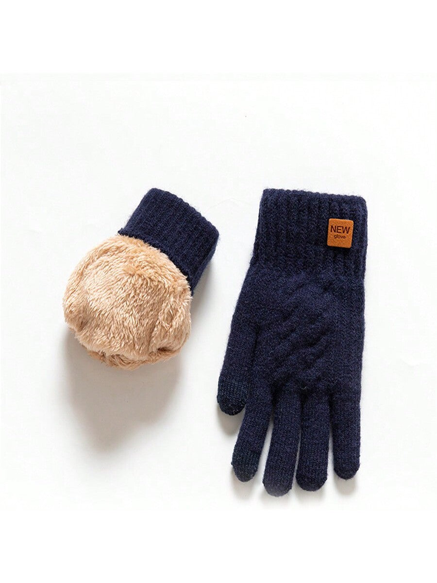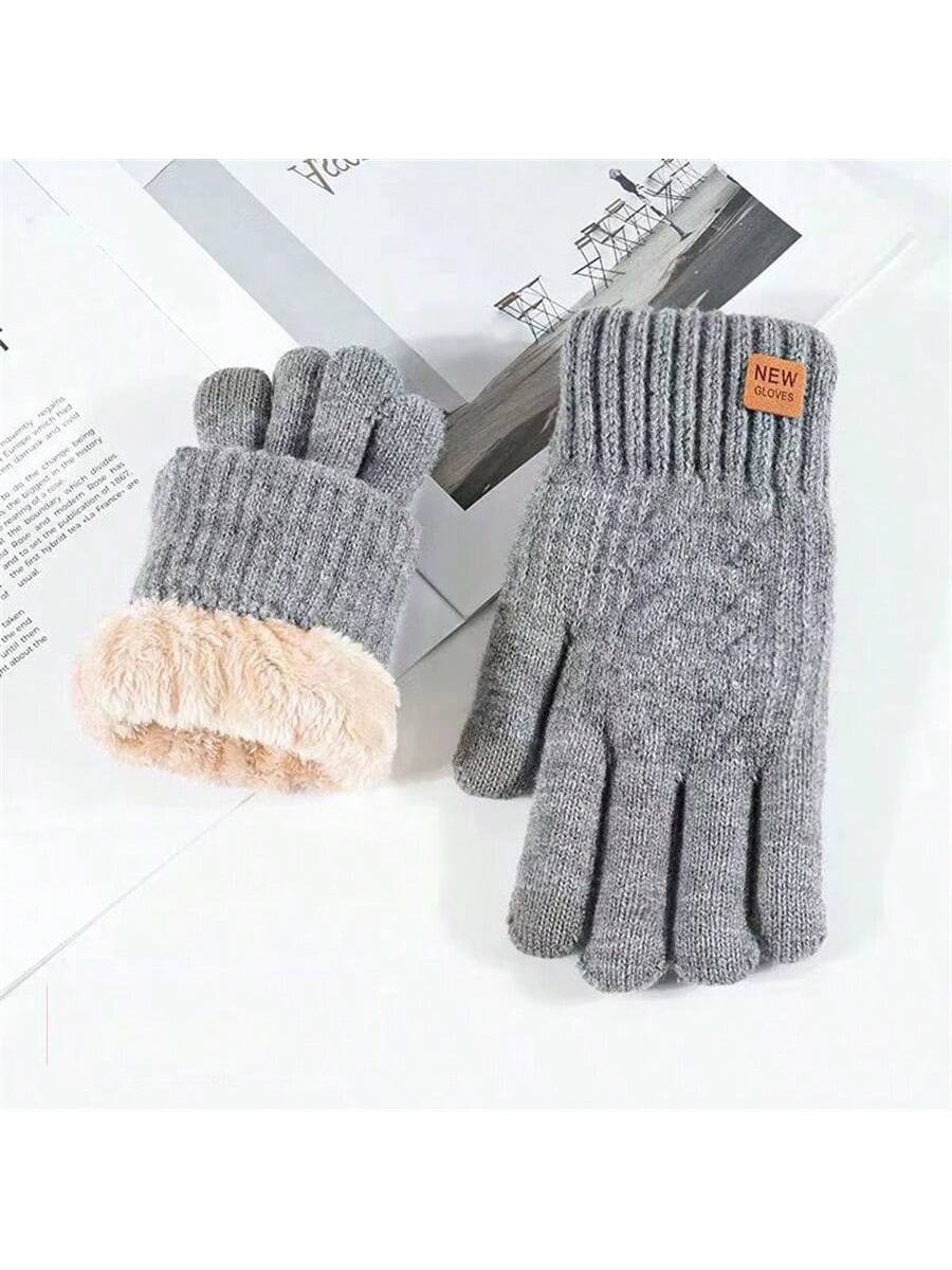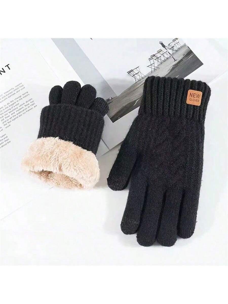2pcs Winter Gloves Thermal Lined Thick, Korean Style, Cute, Anti-Cold, Touchscreen, Knitted, Random Colors