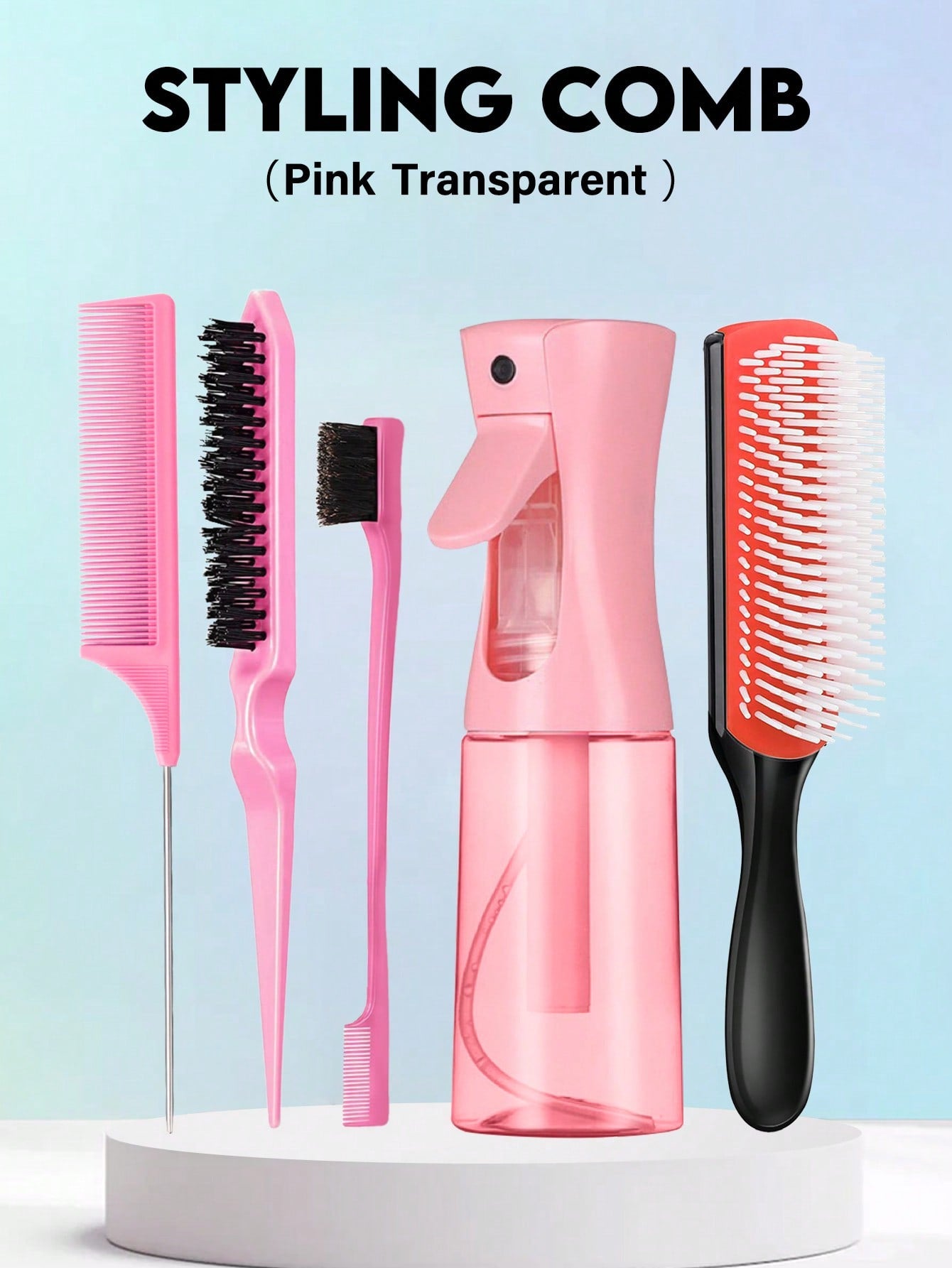 6pcs/Set Hair Styling Tools Set, Hollow Out Detangling Hair Comb, Rat Tail Comb, Teasing Hair Brush, Edge Control Hair Brush, Hairdressing Spray Bottle,Hair Clips,Hair Accessaries,Women Valentine Gift Birthday Boyfriend Girlfriend