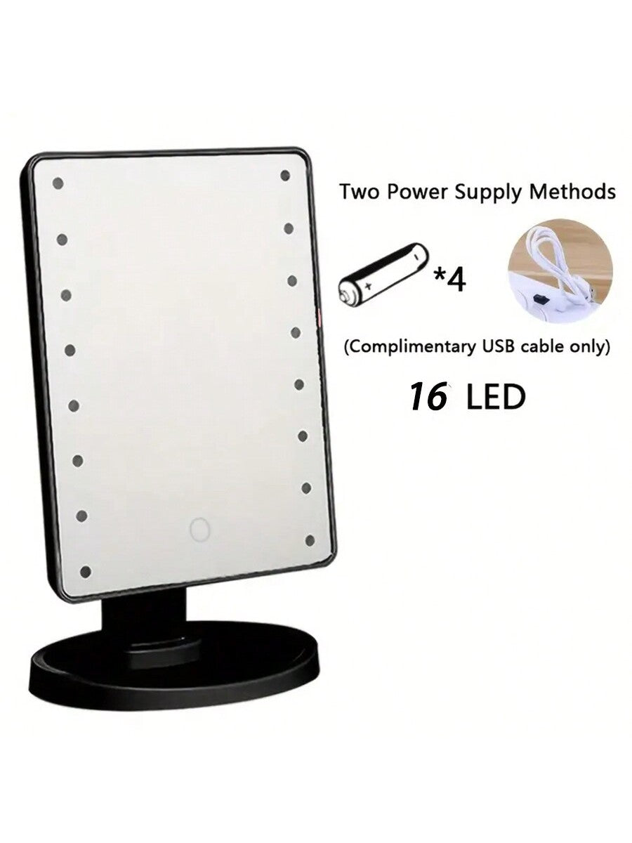 1pc 16led Makeup Mirror Light With Usb/Battery Dual Power Supply, Rotatable Tabletop Mirror With 3 Touch Screen Light Modes