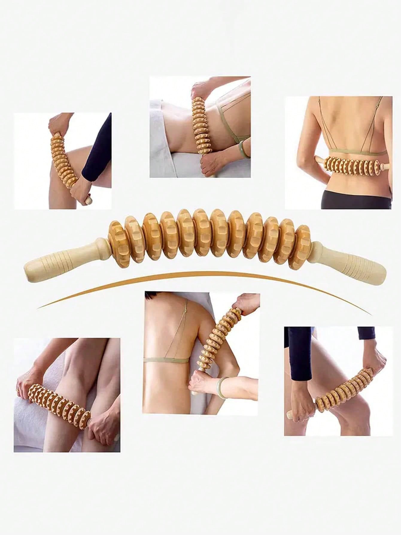 1 Manual Roller Body muscle relaxation massager - Wooden massage Roller tool - Handheld fat Trigger Point rod Lymphatic drainage anti-fat muscle release roller Handheld Massage stick Massager
