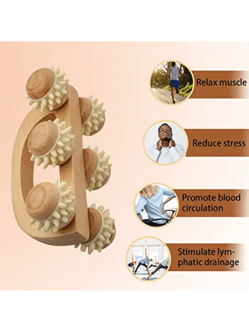1pc Wooden 6-wheel Massage Roller For Relaxing Muscles And Relieving Stress Soft Tissue Therapy, Lymphatic Drainage Massager for Legs, Suitable For Home Or Travel Use