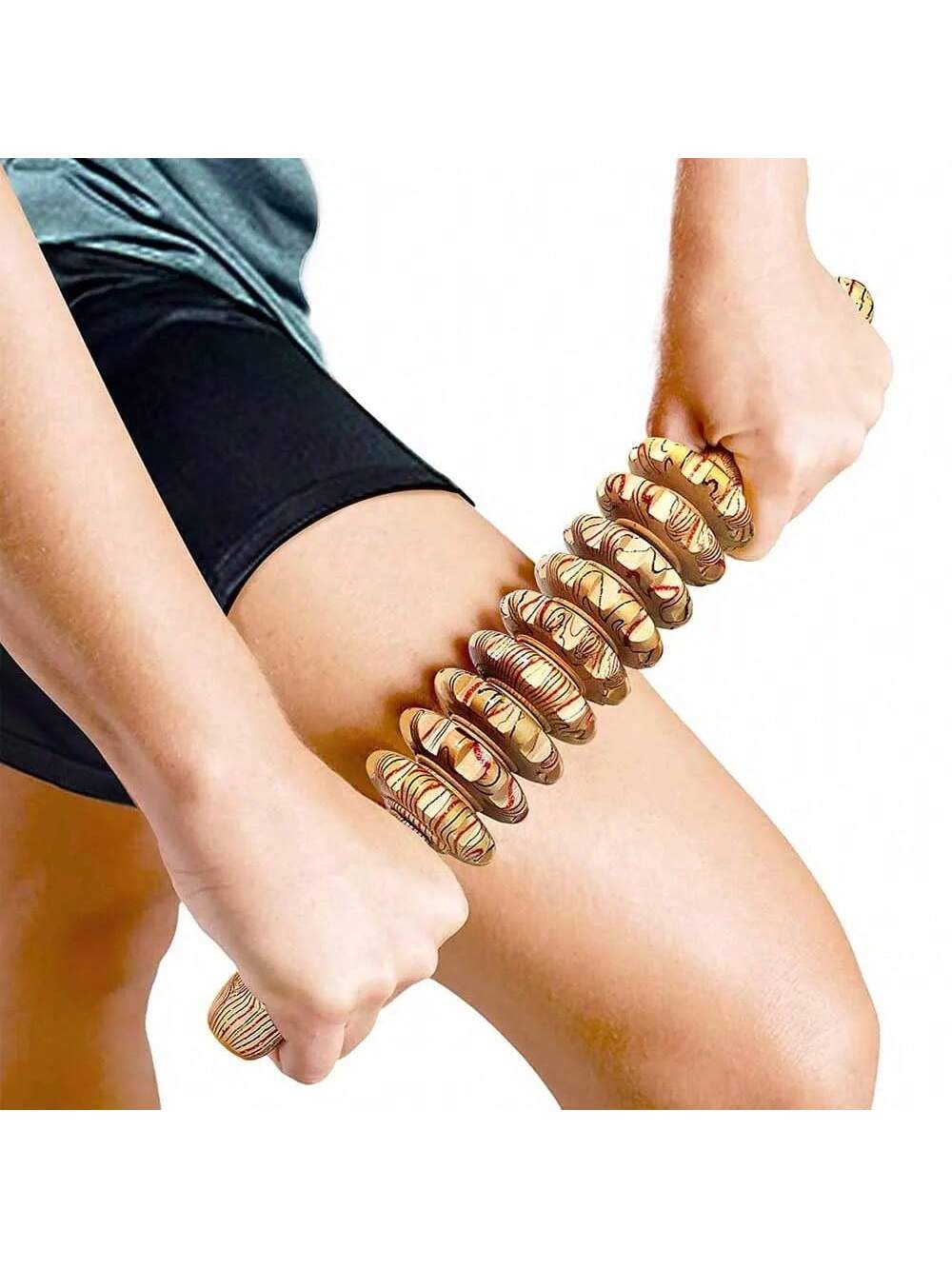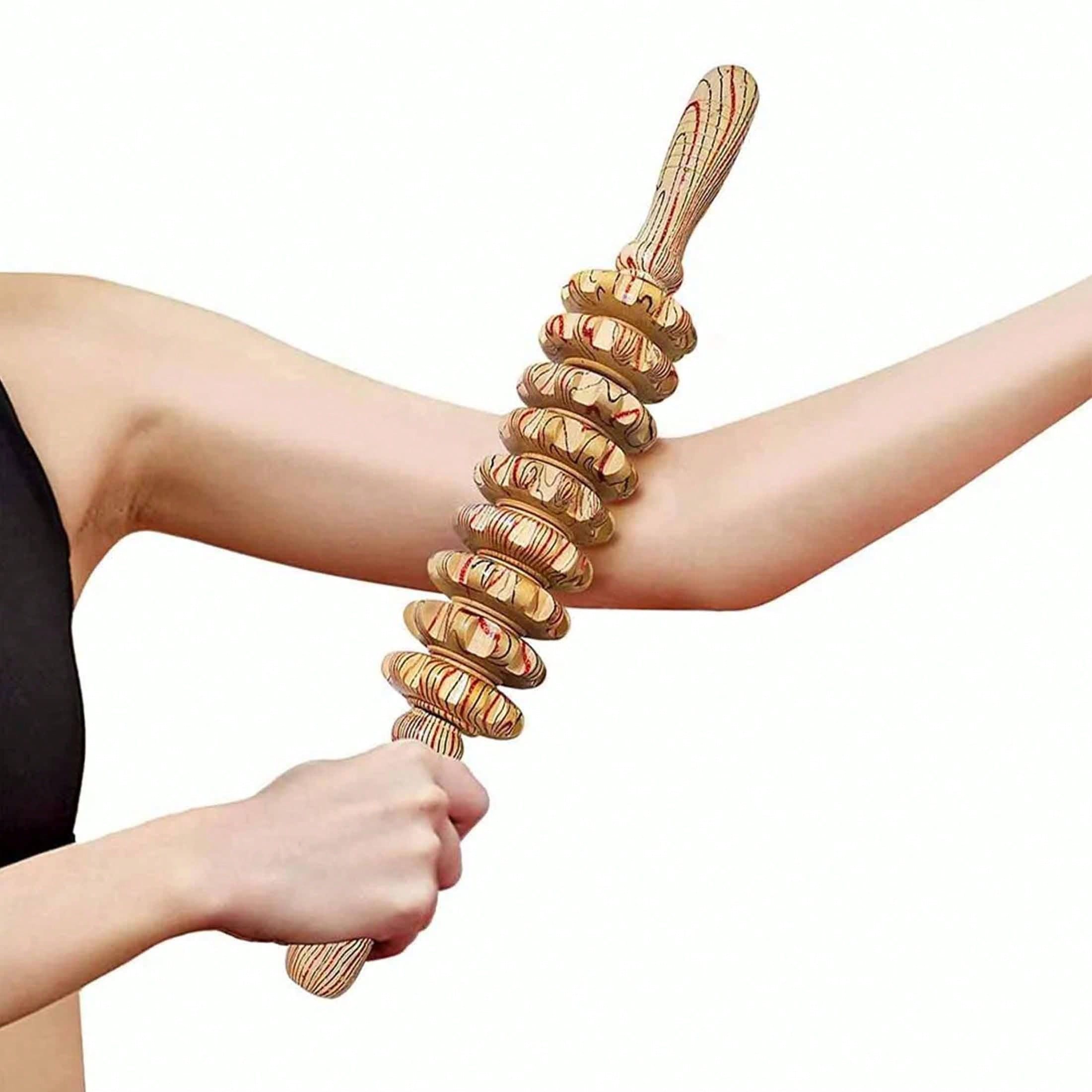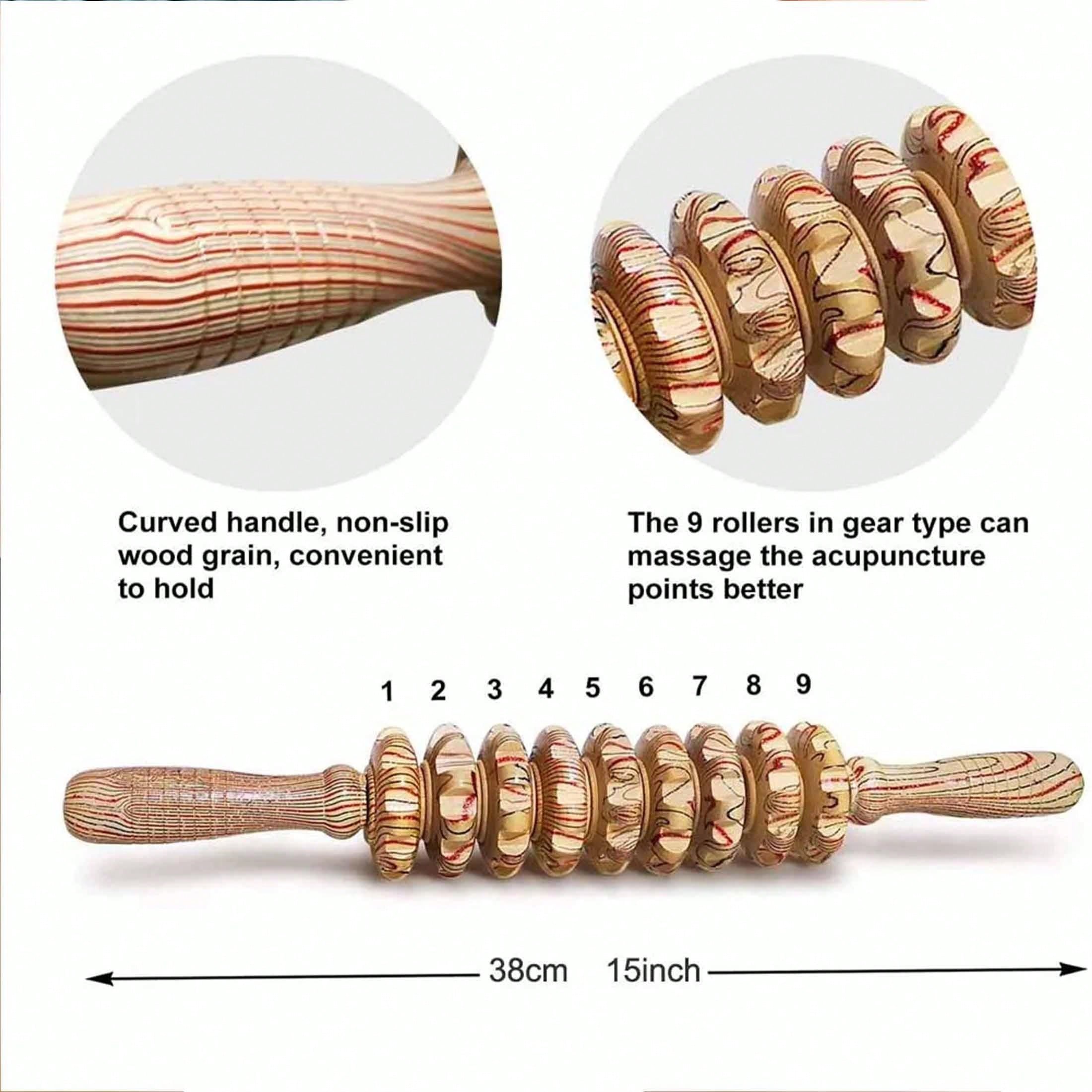 1pc Yoga Meridian Rod Nine Fine Wheel Shaft Whole Body Massage Roller Pounded Waist Back Massage Neck Leg Wooden Massager