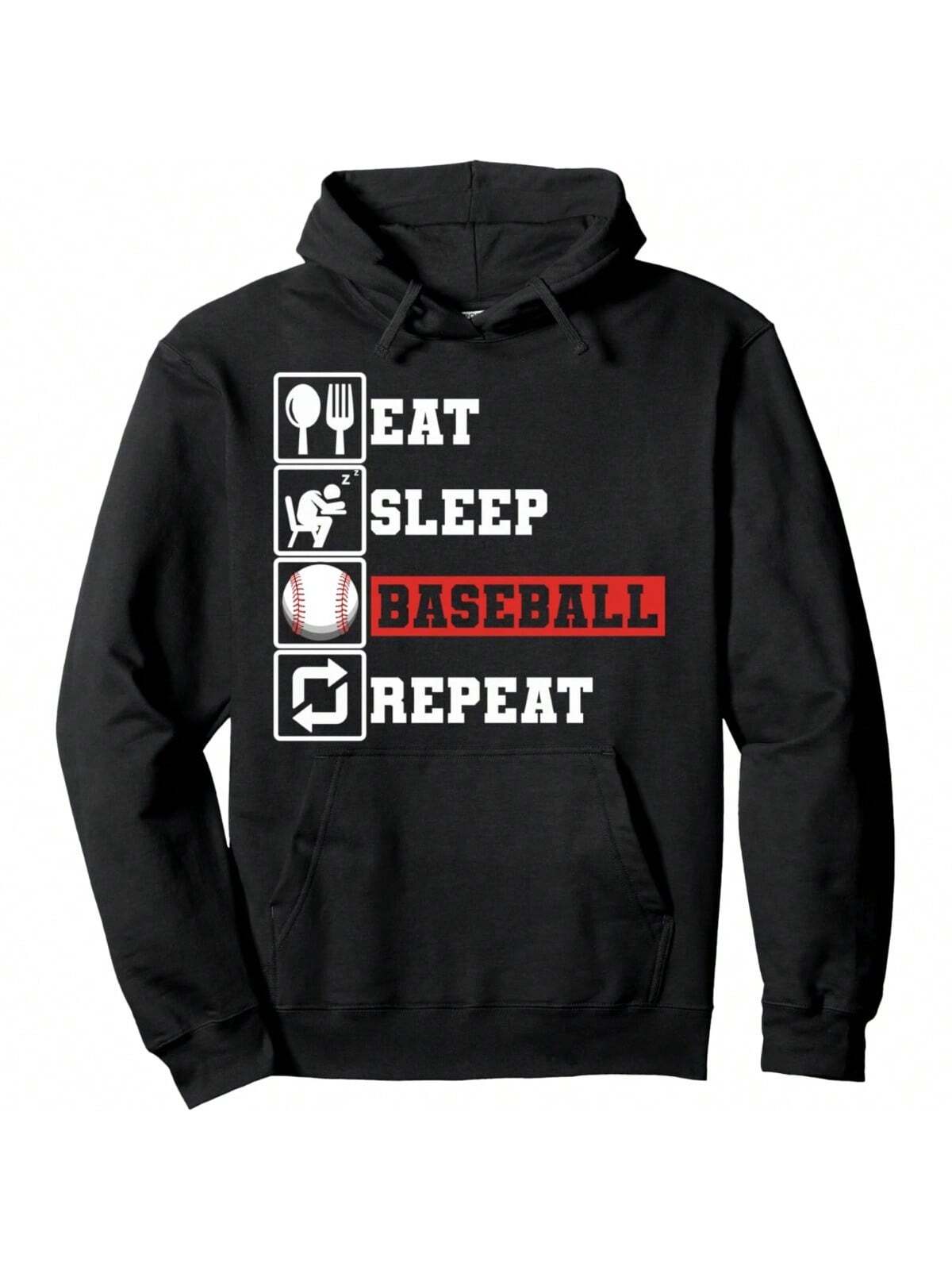 Funny Baseball Player Eat Sleep Repeat Hoodie For Men, Humor Sports Lover Men's Comfortable Sweatshirt Pullover Gift For Him,Her