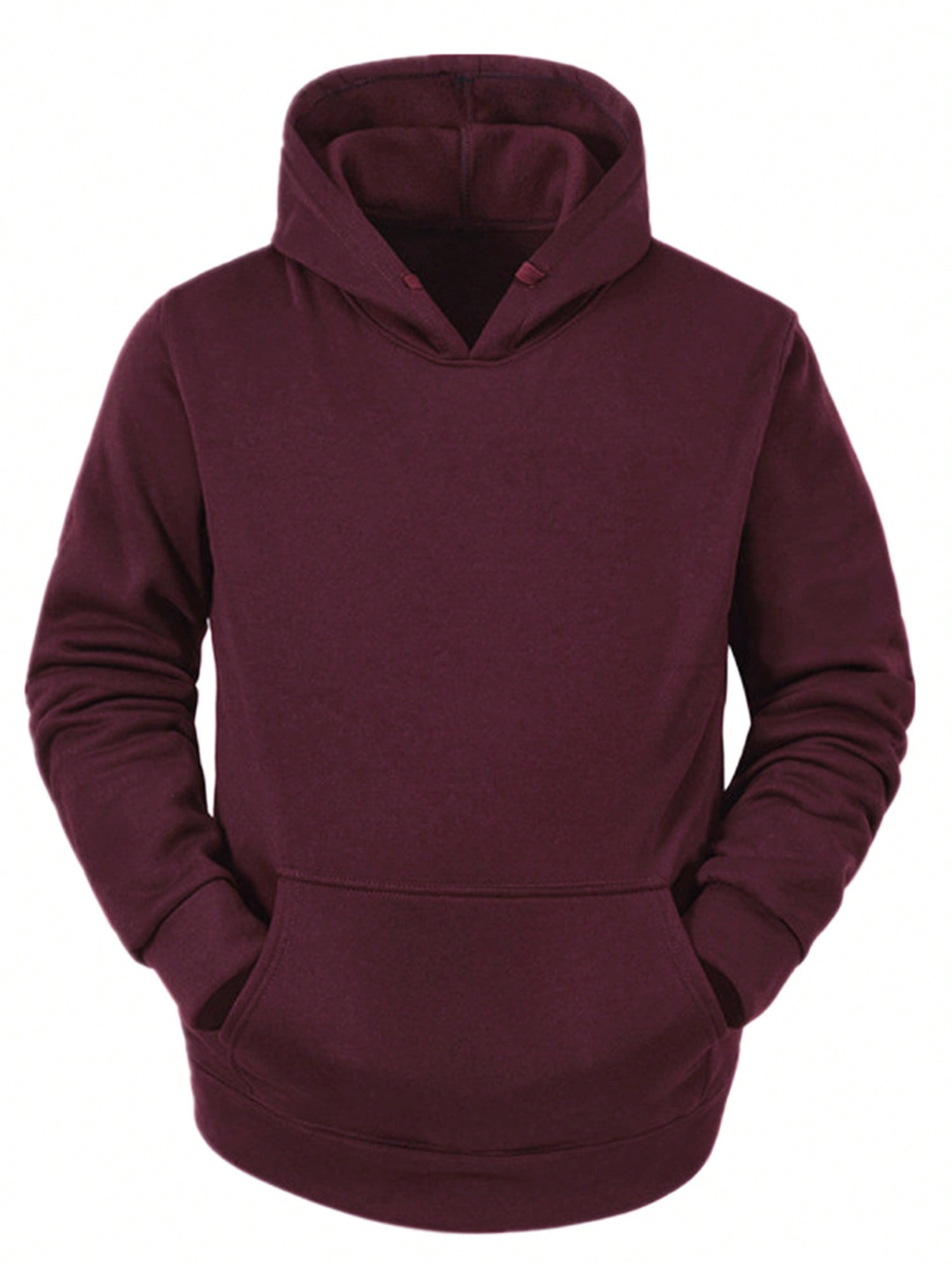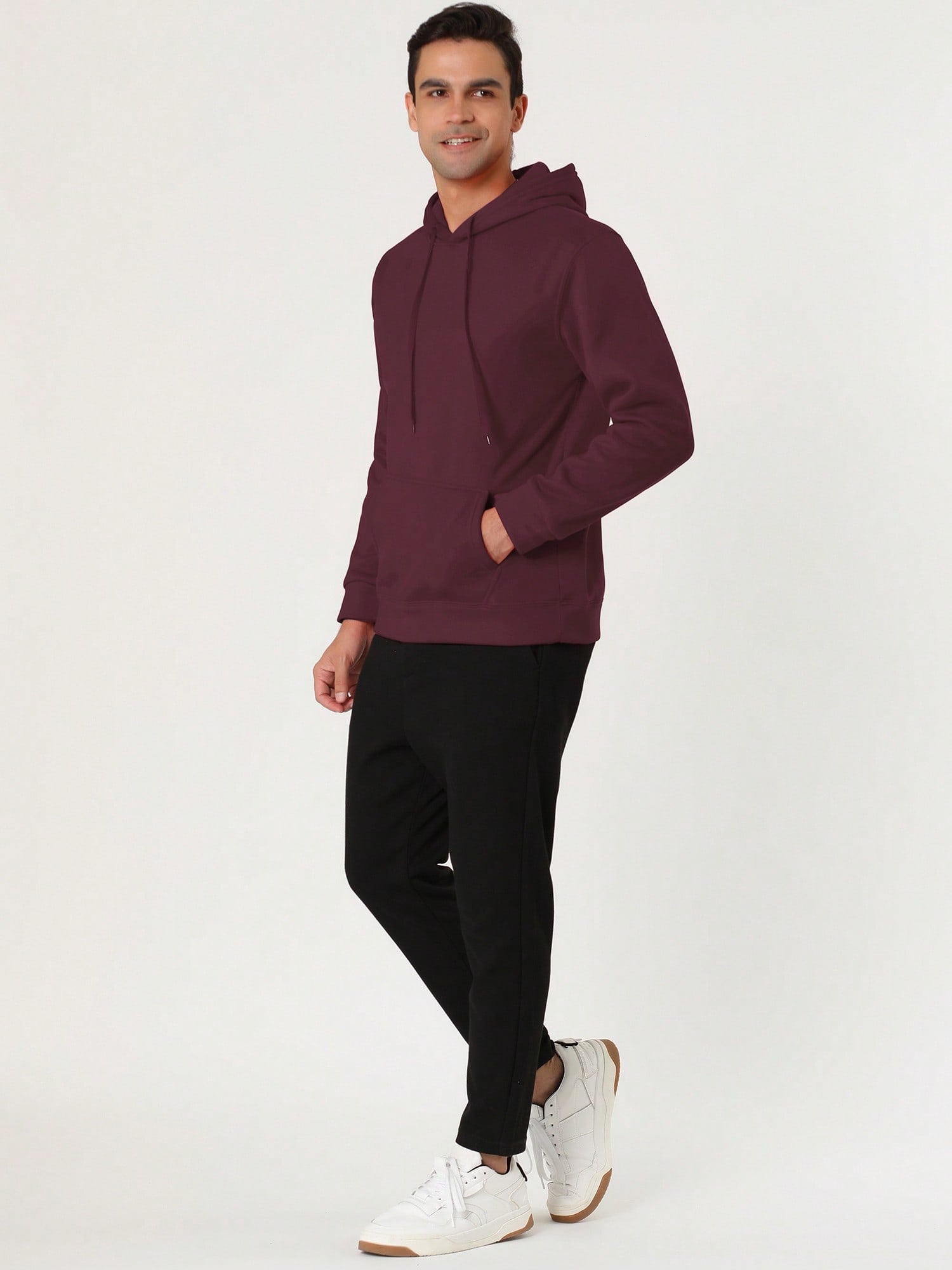 Men's Plush Lined Pullover Hoodie Solid Long Sleeves Hooded Sweatshirts With Pocket