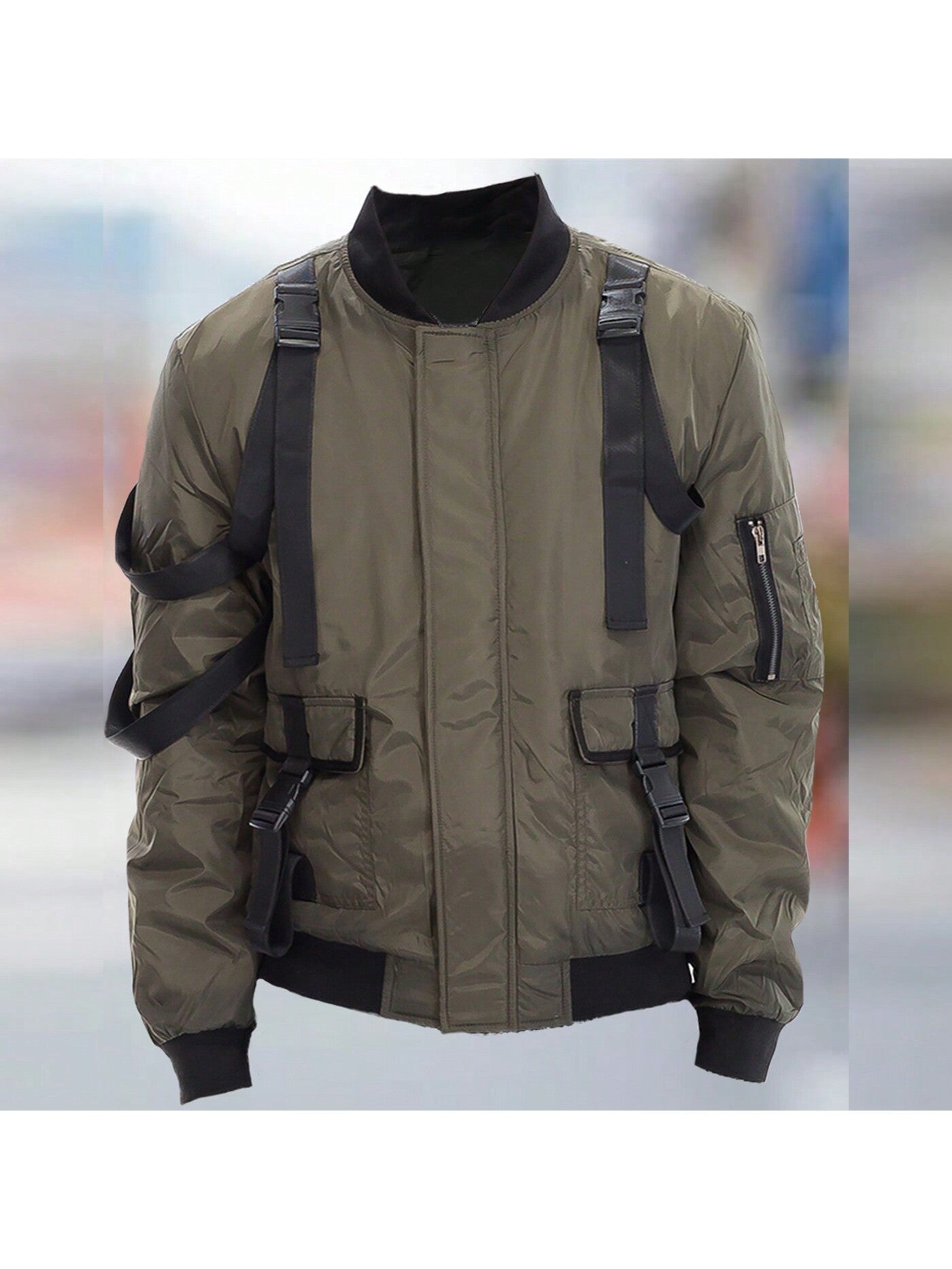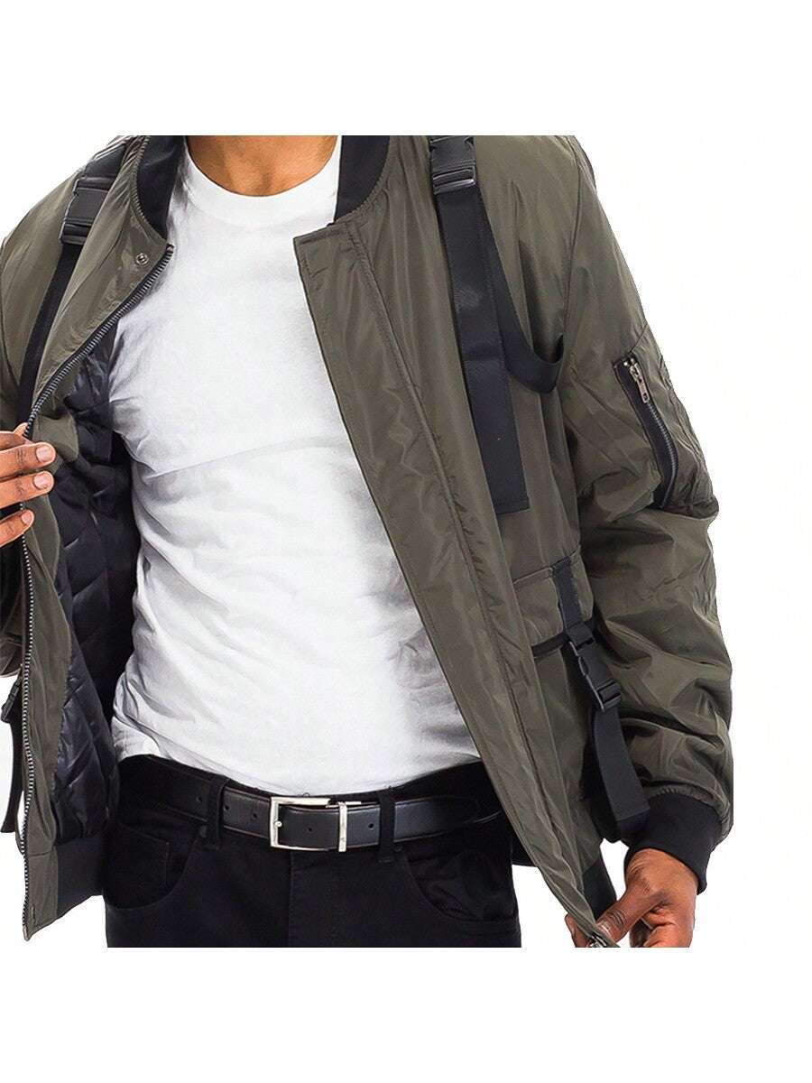 Mens Tactical Zip Up Bomber Jacket Streetwear Padded Outerwear Zip Up Coat