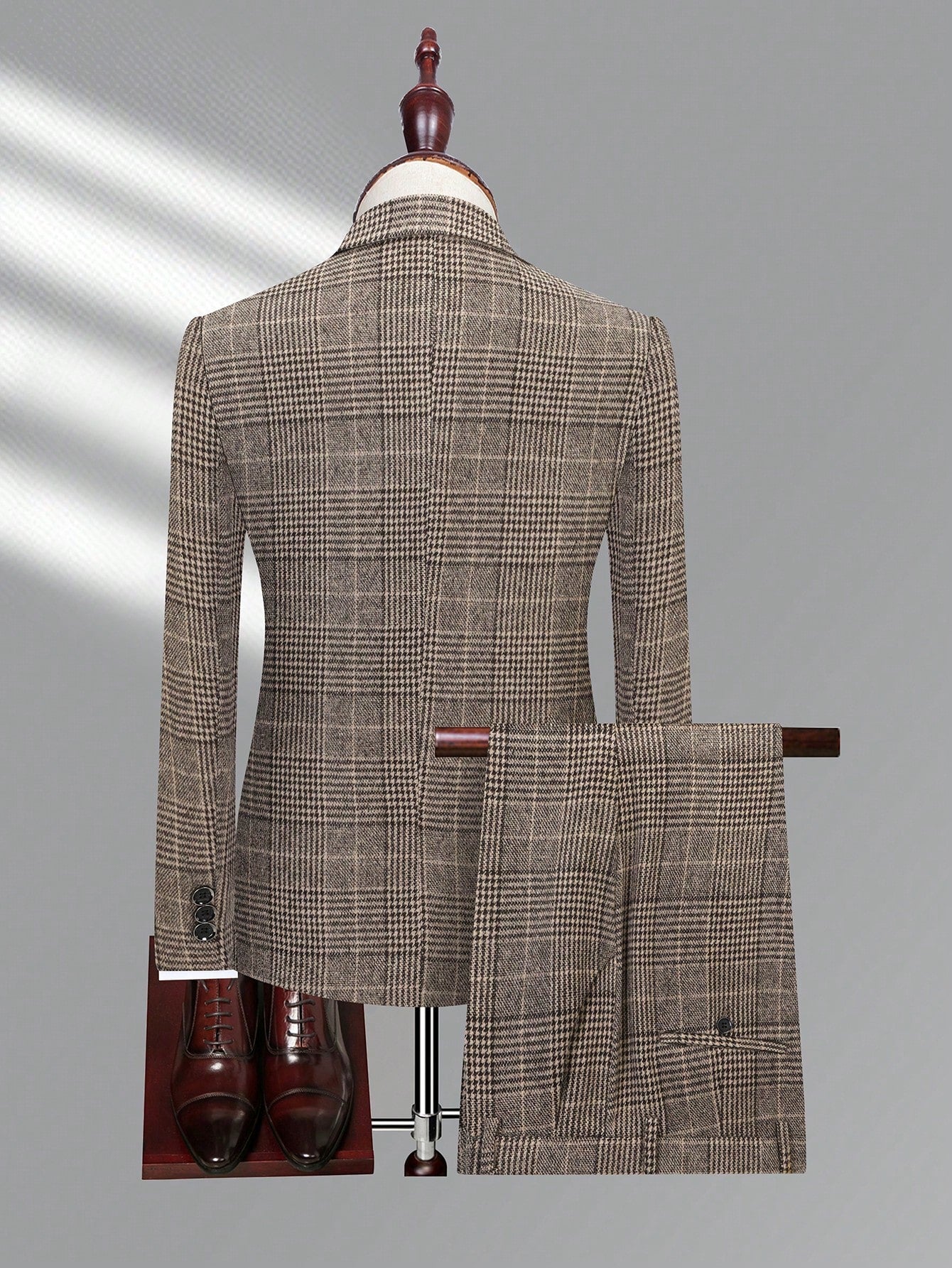 Top Type : BlazerNeckline : LapelBottom Type : PantsDetails : Pocket, Button FrontFit Type : Regular FitSleeve Type : Regular SleeveStyle : WorkColor : Coffee BrownPattern Type : PlaidFabric : Non-StretchCare Instructions : Machine wash or professional dry cleanTemperature : Late Fall (10-17℃/50-63℉)Sheer : NoTops Sleeve Length : Long Sleeve...