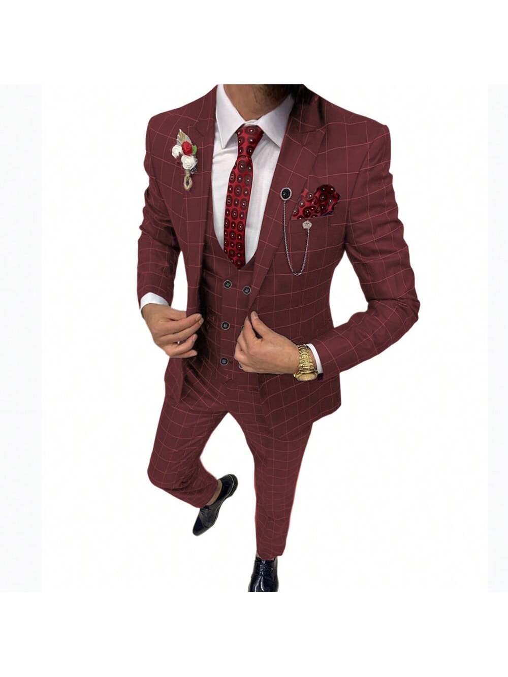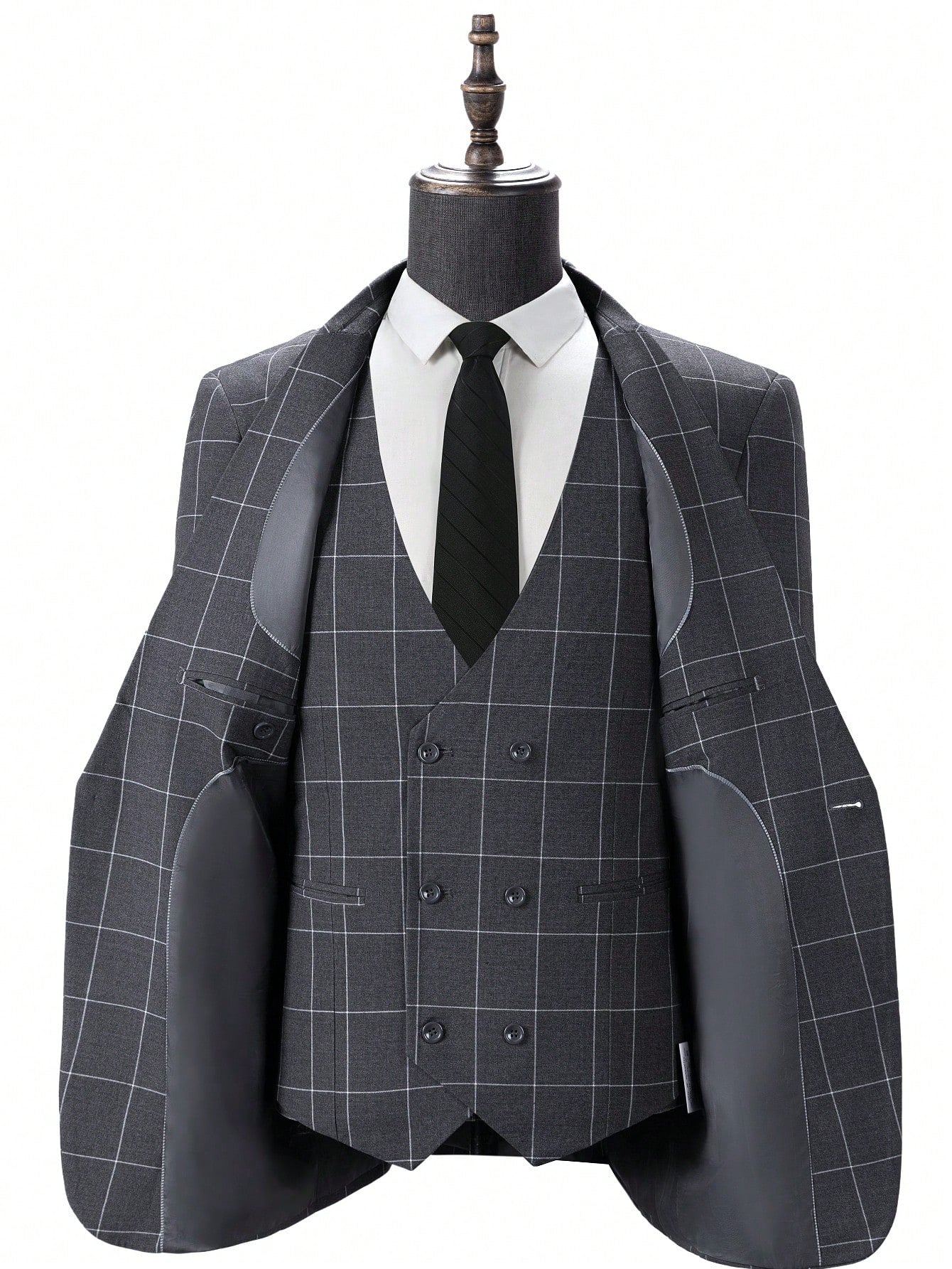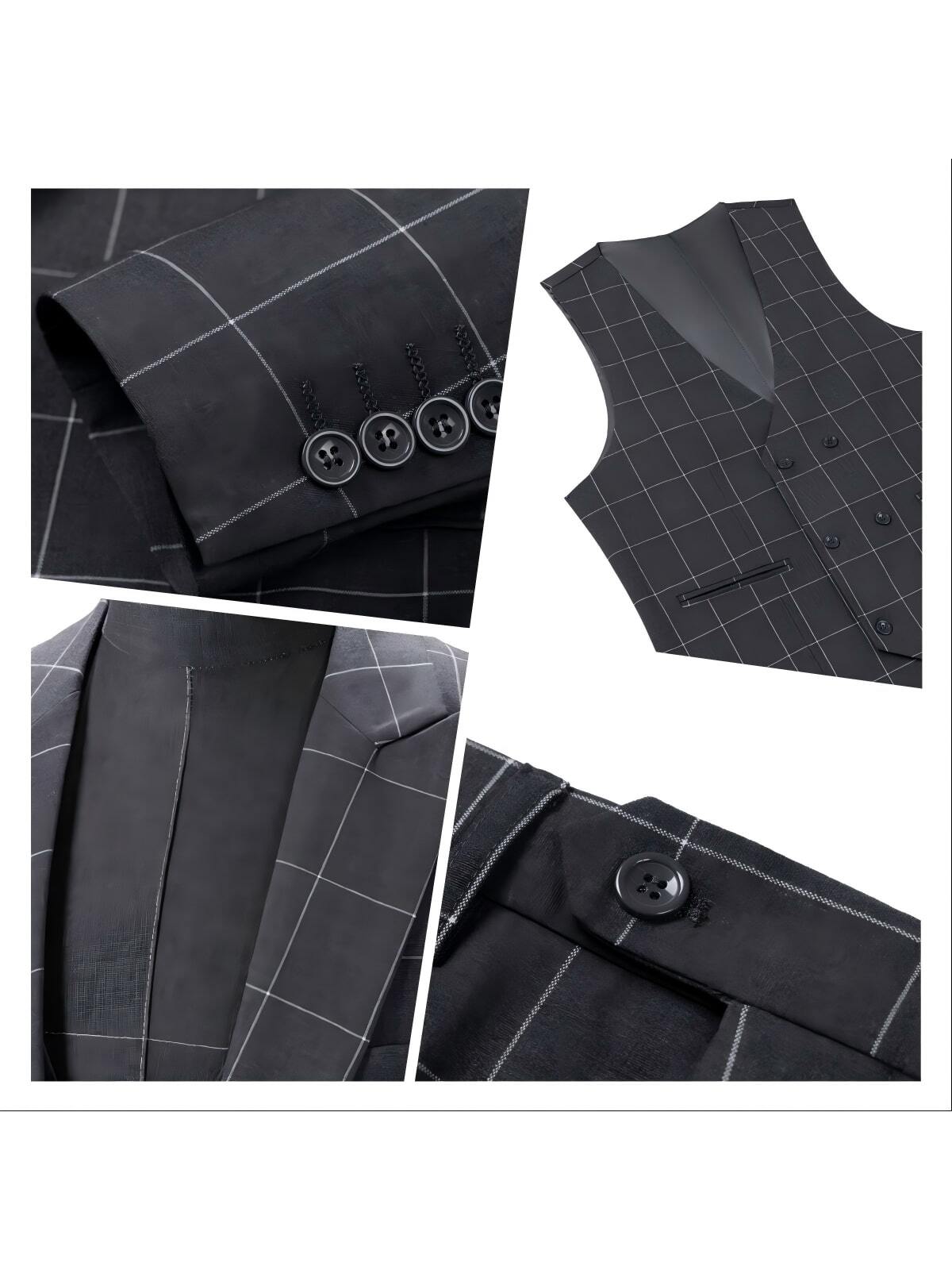 Mens Suit 3 Piece Suit Plaid Double Breasted Formal Business Wedding Prom Suit Male Groom, Blazer Vest Pant