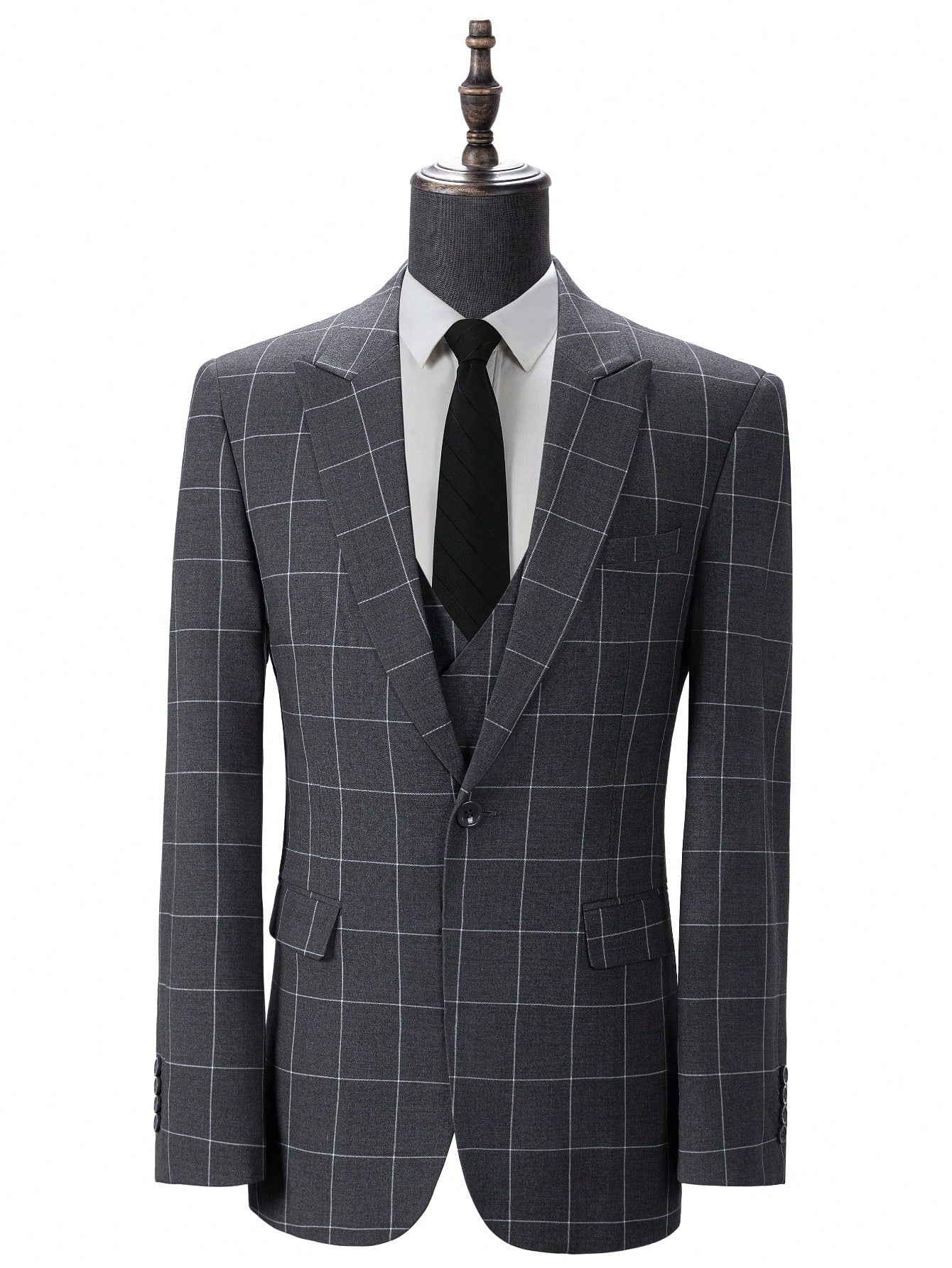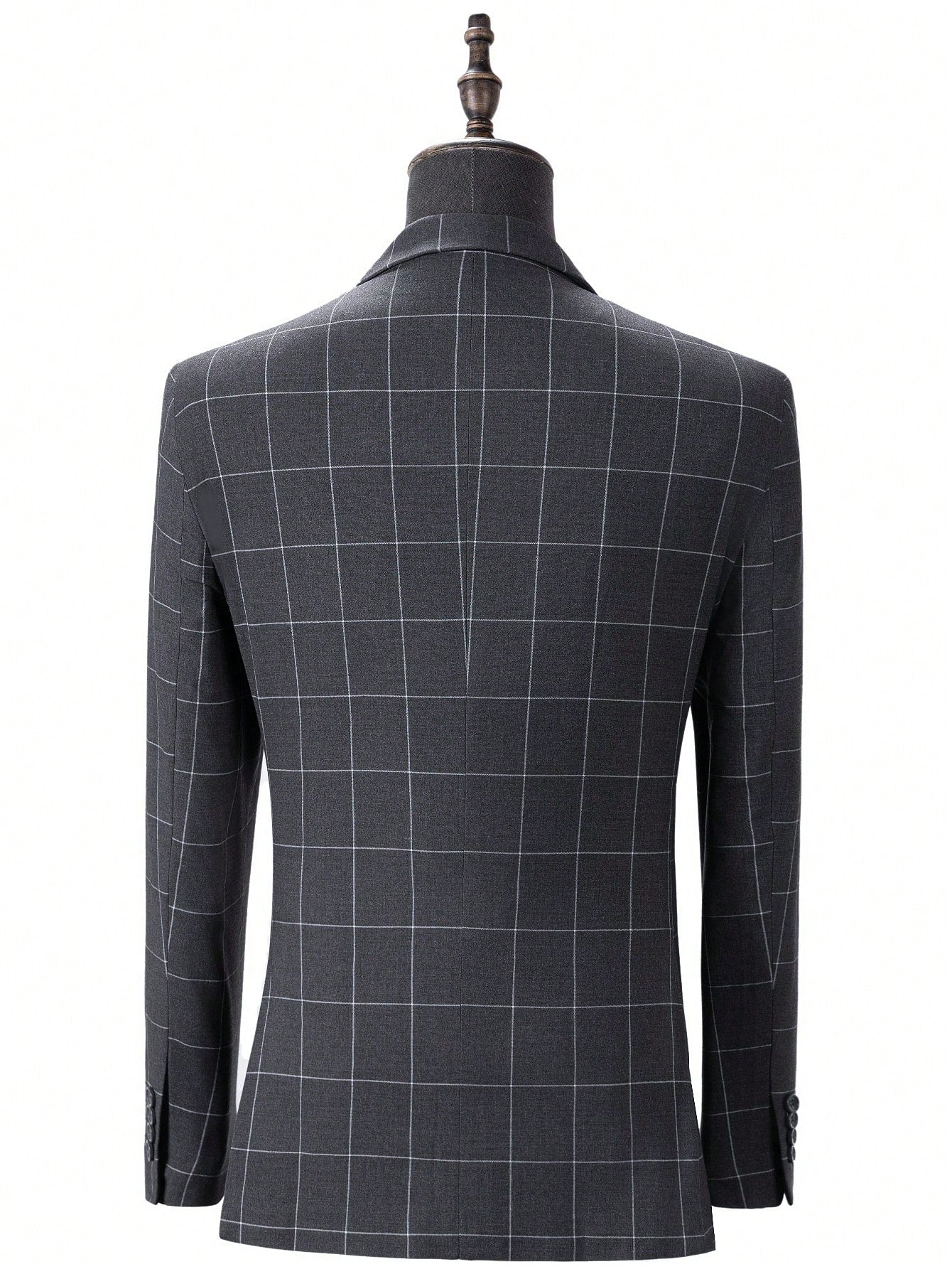 Features : Great quality, WarmingTop Type : Blazer, WaistcoatDetails : Button, PocketStyle : Casual, WorkSleeve Length : Long SleeveBottom Type : PantsFit Type : Regular FitSleeve Type : Regular SleeveNeckline : Peak LapelsColor : GreyPattern Type : Plaid, PlantsFabric : Non-StretchLength : RegularMaterial : Woven FabricComposition : 65% Polyester, 35%...