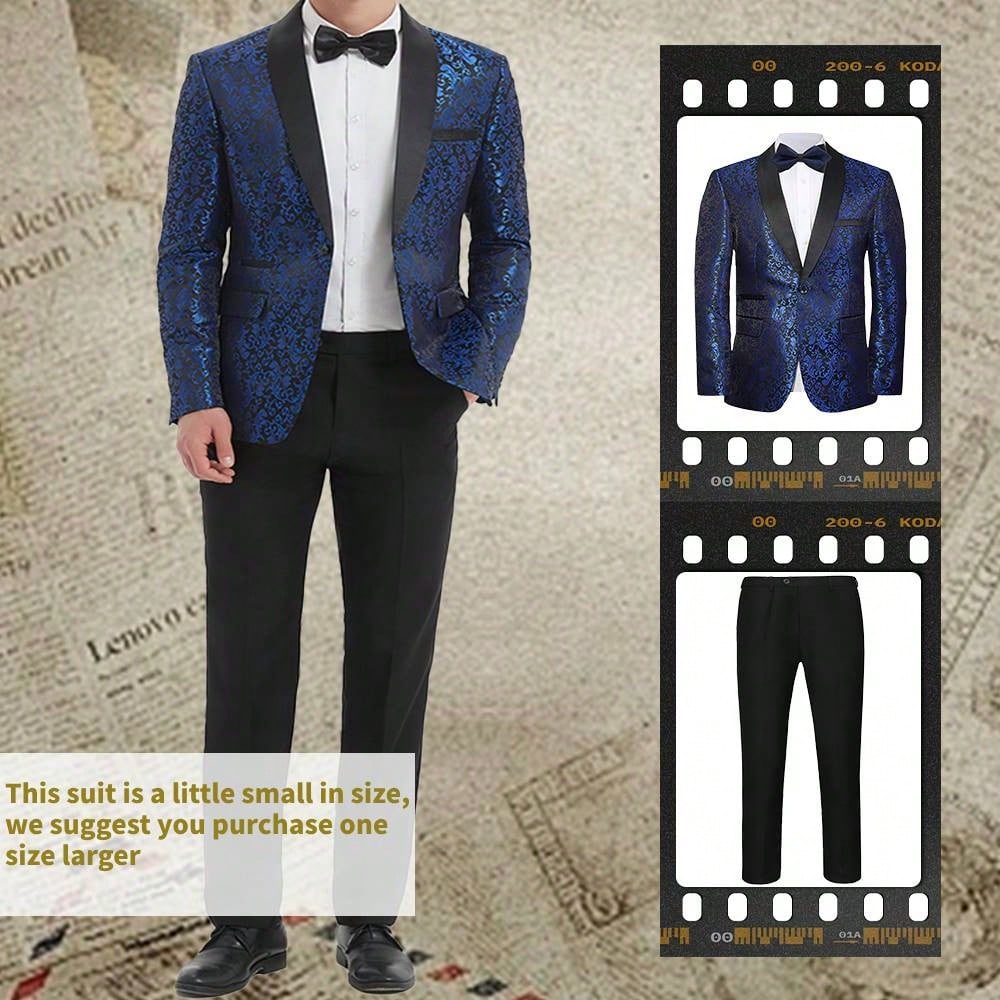 Plus Size 2 Pcs Men Suit Tuxedo Blazer Pants Jacquard Floral Print Shawl Collar One Collar Flap Pockets For Party Wedding Prom Formal Occasion