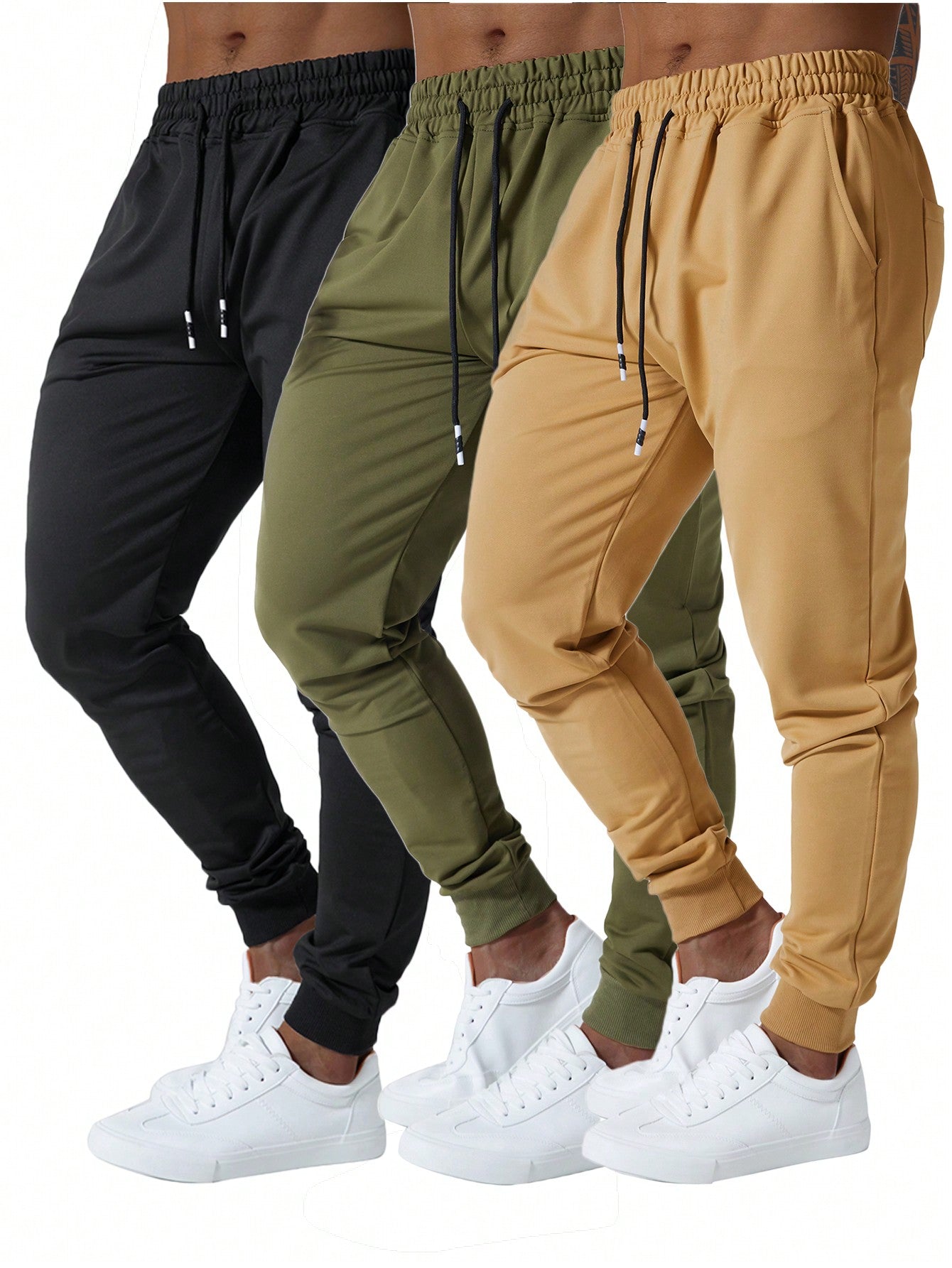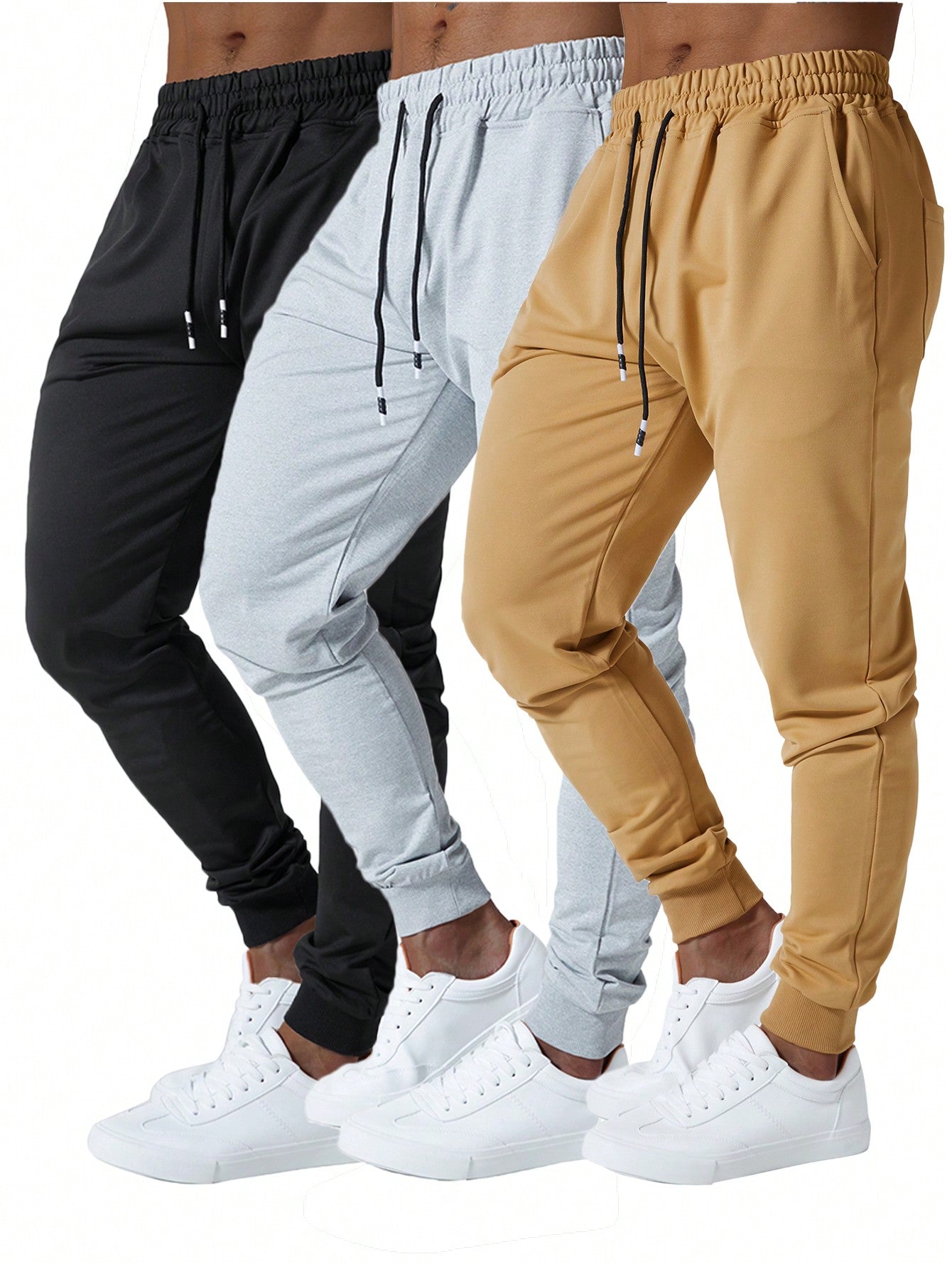 3 Pcs Men Jogger Sweatpants Slim Fit Elastic Drawstring Deep Side Pockets Athletic Track Pants For Gym Running Workout