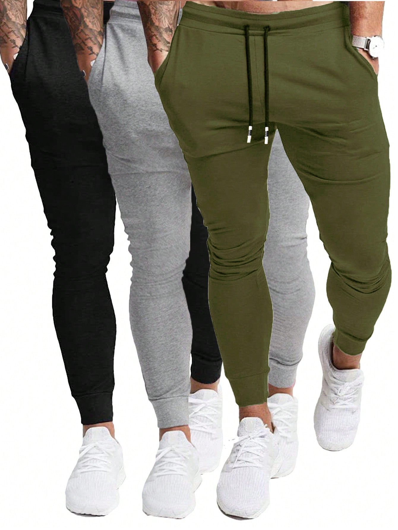 3 Pcs Men's Casual Jogger Sweatpants Slim Fit Drawstring Deep Pockets Gym Running Workout Stretch Sweatpants