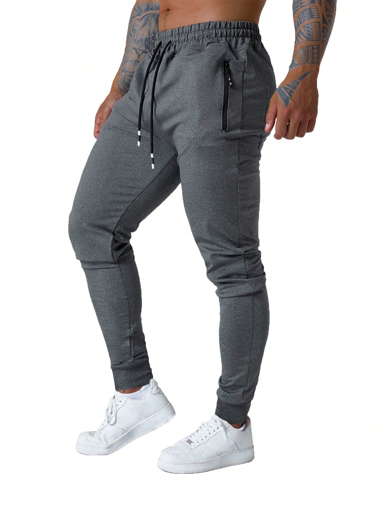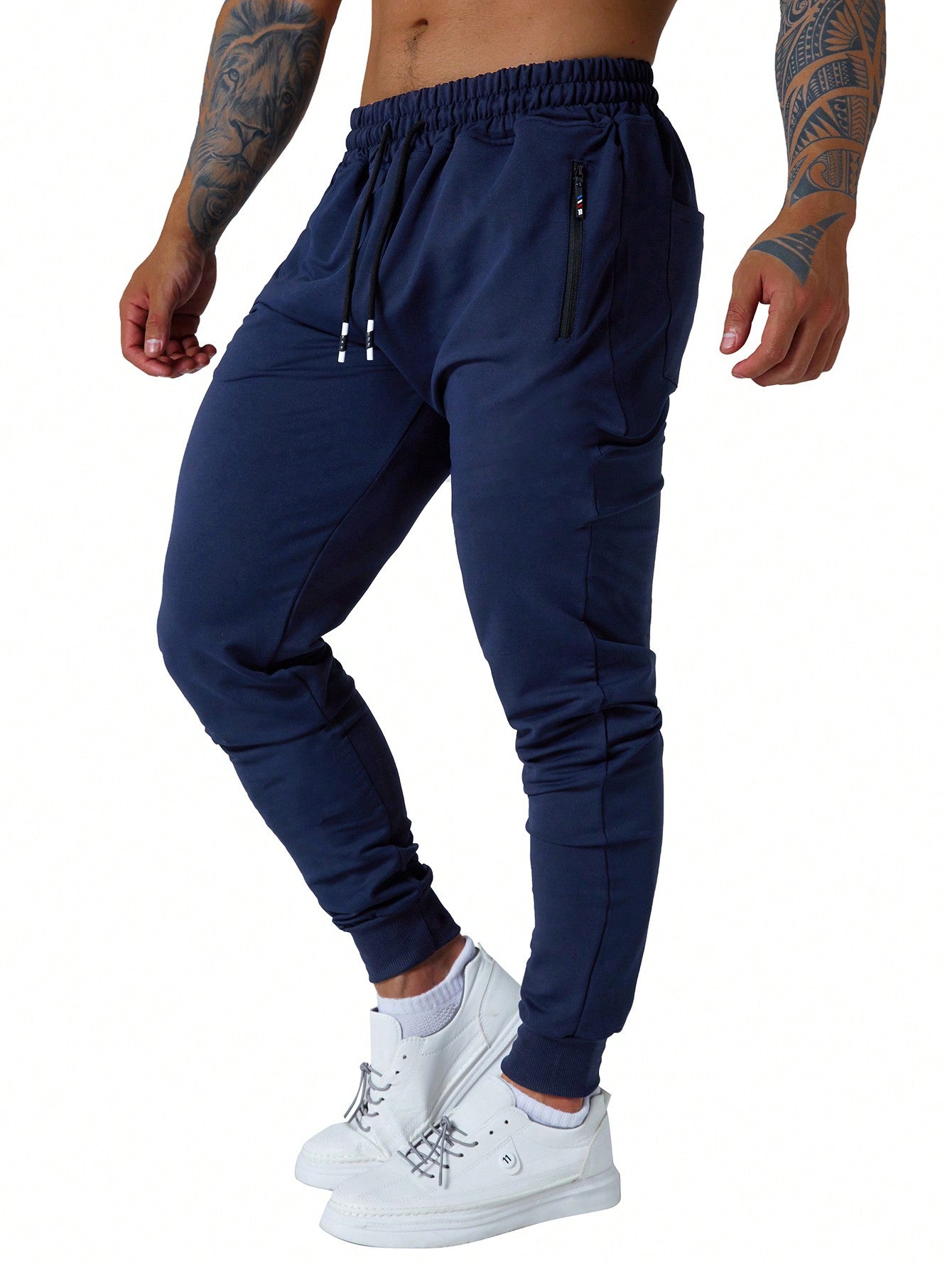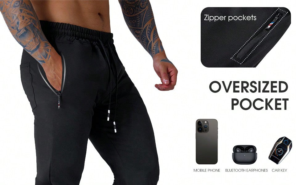 4 Pcs Men's Jogger Sweatpants With Zipped Pockets Slim Fit Drawstring Athletic Track Pants For Gym Running Workout