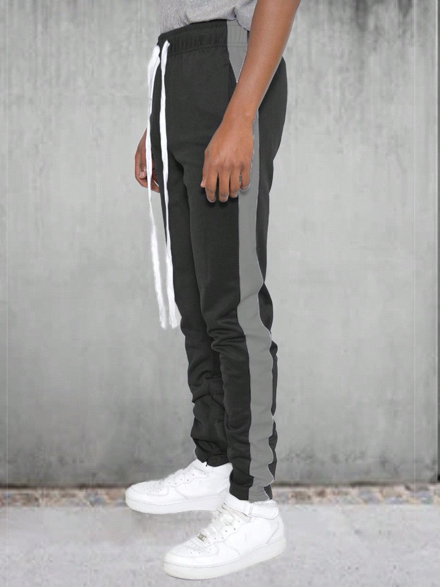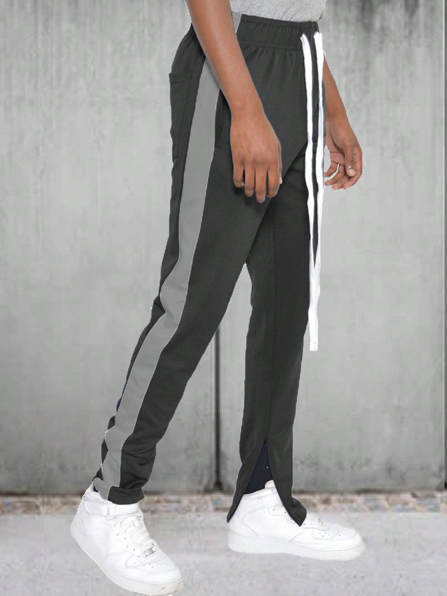 Men Side Stripe Ankle Zipper Track Pants Jogger Sweatpants Contrast Color Hem Zipper