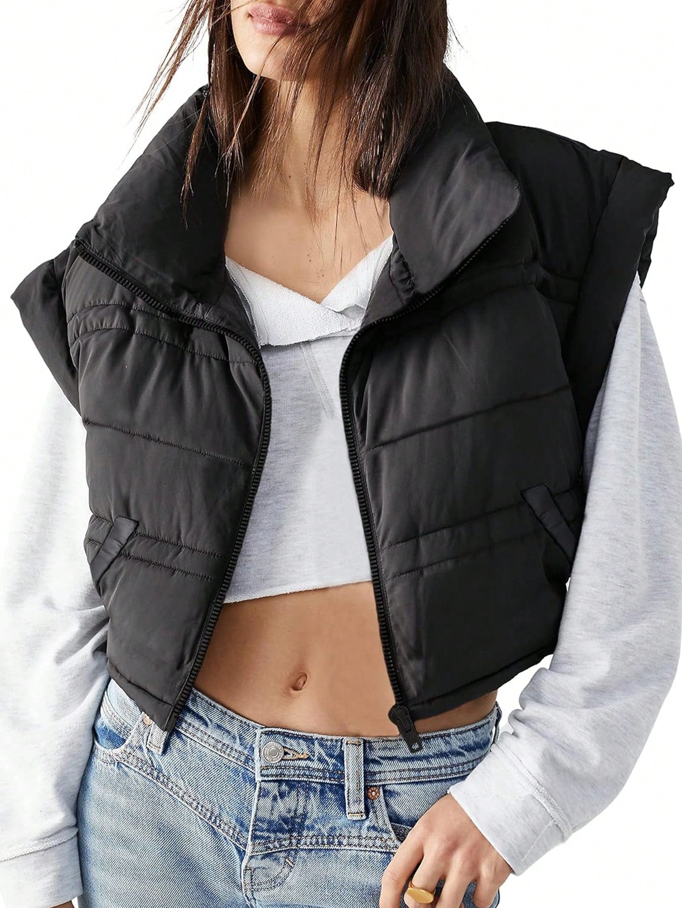 Women's Cropped Puffer Vest Black Zip Up Quilted Padded Gilet Fall Fashion 2022