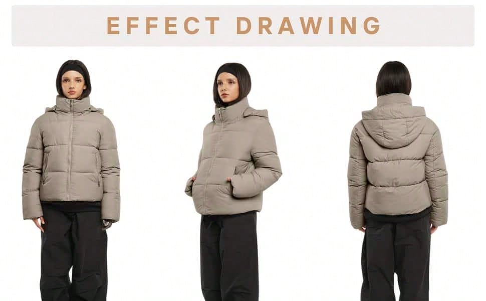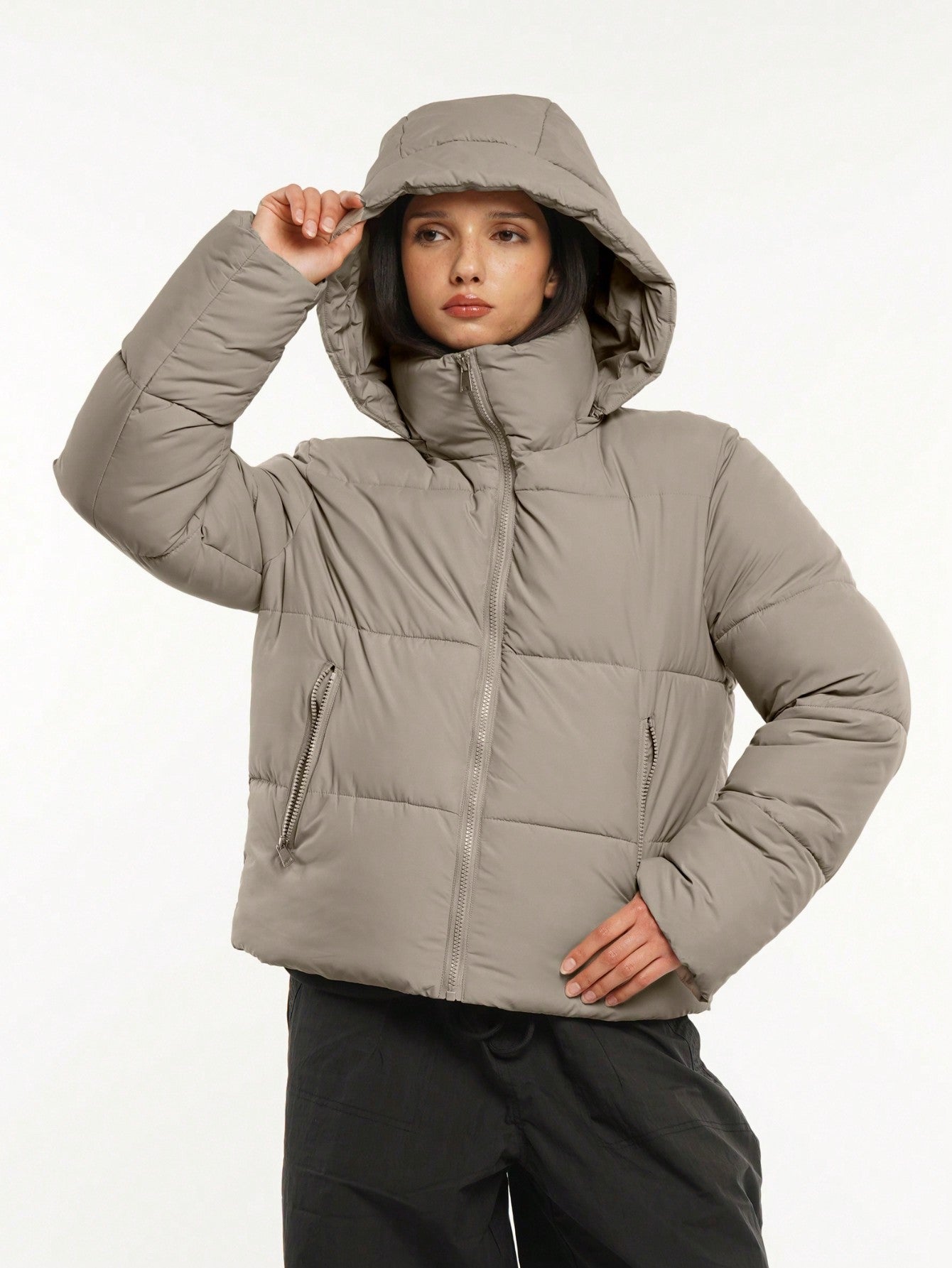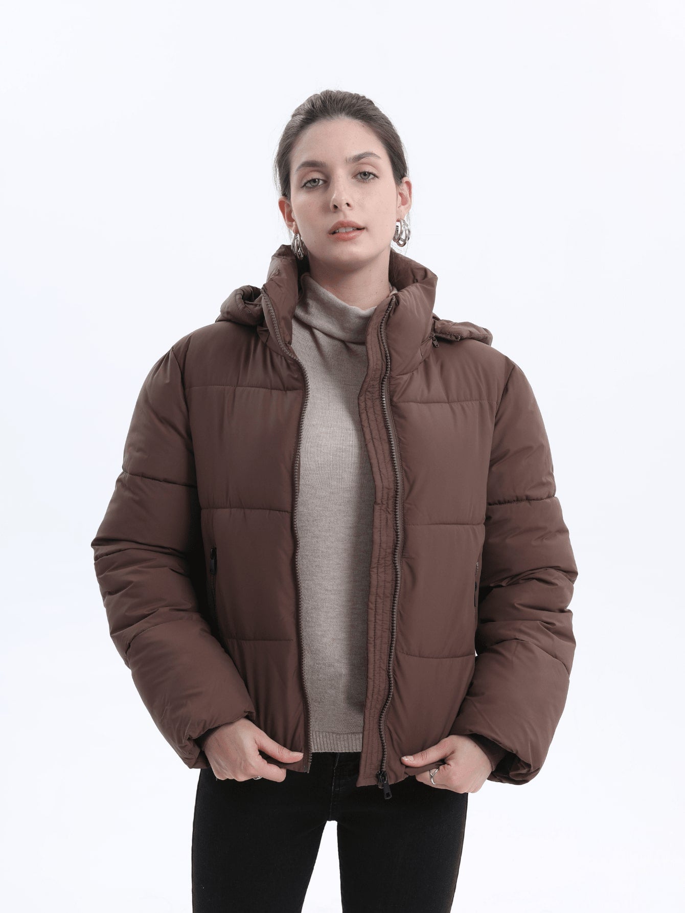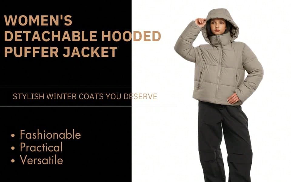 Women's Winter Puffer Jackets With Removable Hood,Zip Pockets,Stand Collar,Warm Ladies Quilted Coat