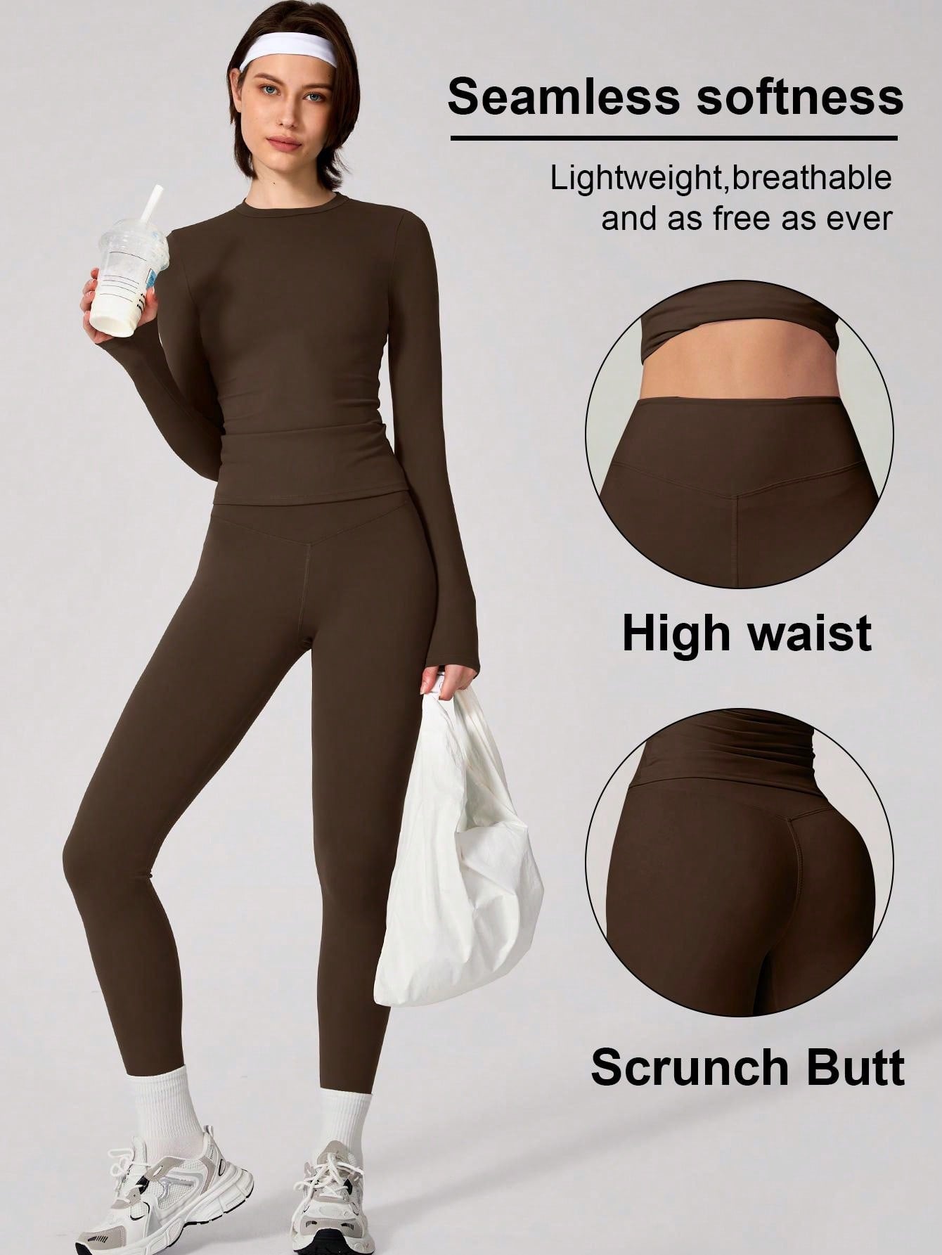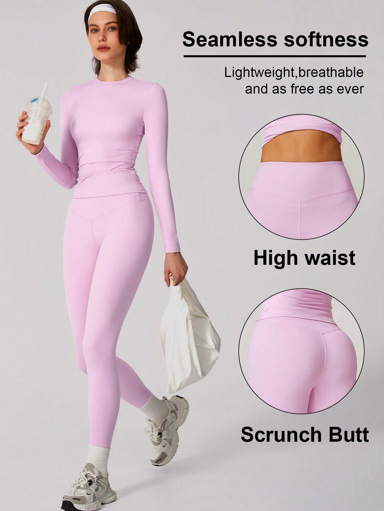 Set Women Simple Solid Color Sports Top And Pants Base Set Yoga Daily