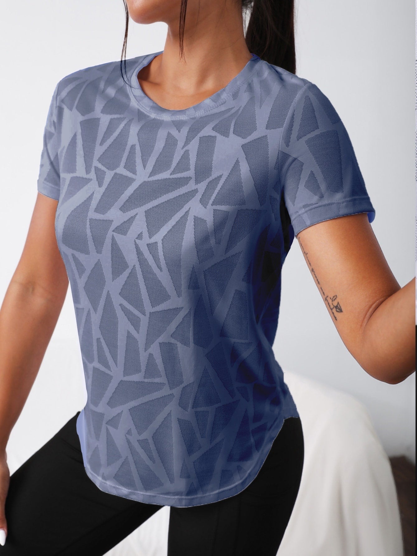 SHEIN Sport Studio Geo Print Curved Hem Sports Tee Workout Tank Gym Top