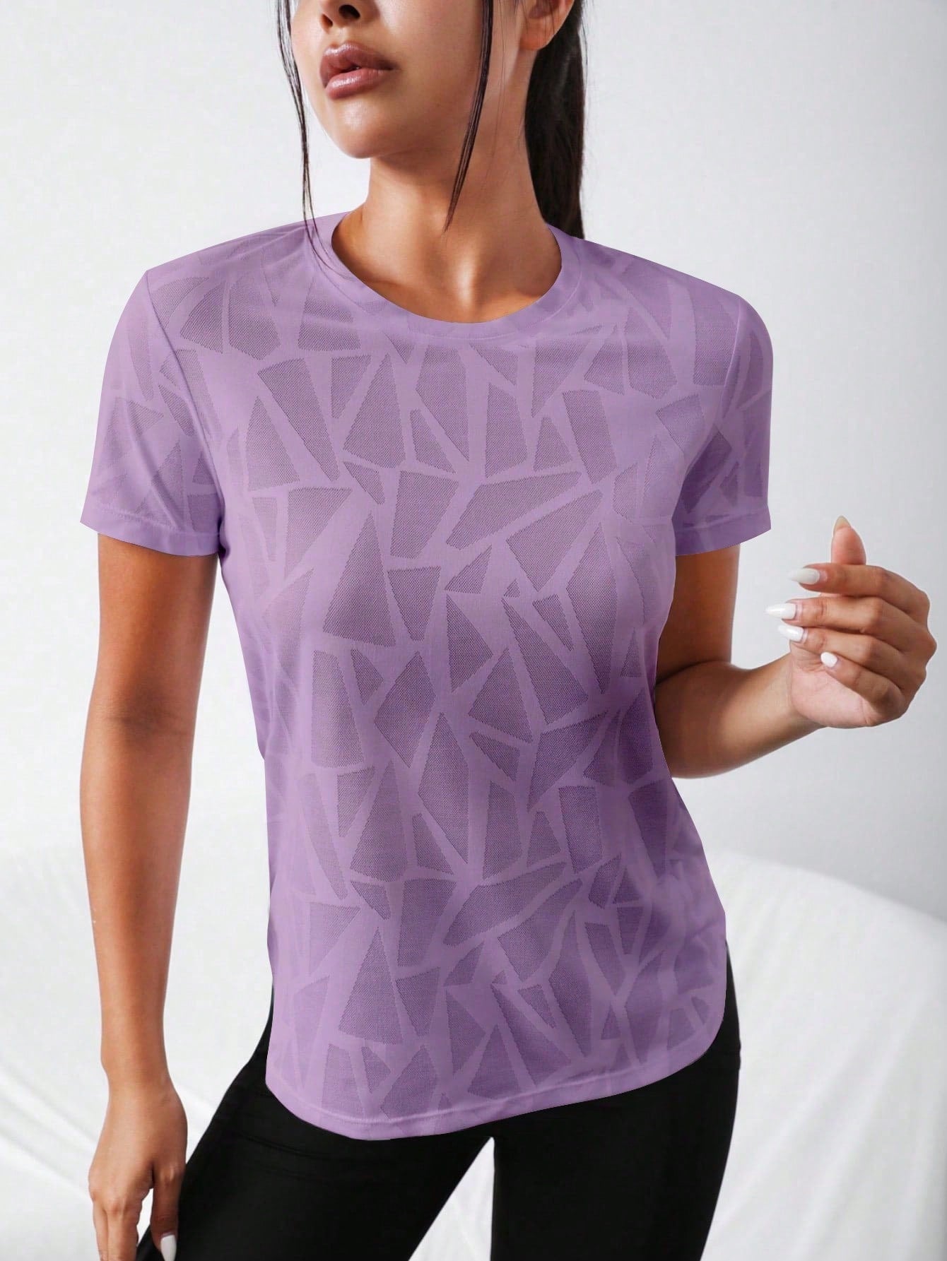Activity : Running & Work OutNeckline : Round NeckDetails : SheerSleeve Type : Regular SleeveColor : Mauve PurplePattern Type : GeometricSleeve Length : Short SleeveLength : RegularFit Type : Regular FitFabric : Slight StretchMaterial : FabricComposition : 100% PolyesterCare Instructions : Machine wash or professional dry cleanLined For Added Warmth...