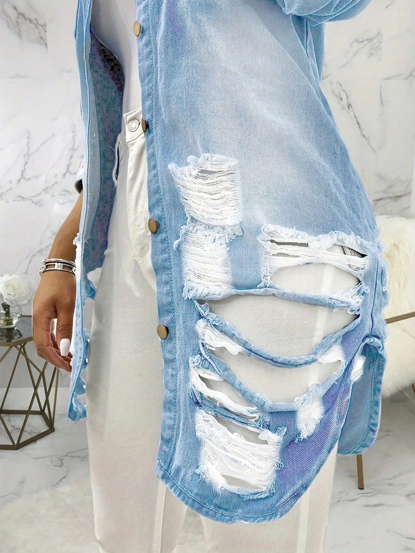 Hem Shaped : AsymmetricalDetails : ButtonStyle : CasualPlacket : Single BreastedSleeve Type : Regular SleeveType : ShacketNeckline : Shirt CollarColor : Light WashPattern Type : Plain, All Over PrintSleeve Length : Long SleeveFit Type : Regular FitLength : RegularMaterial : DenimComposition : 90% Viscose, 10% PolyesterCare Instructions : Machine wash,...
